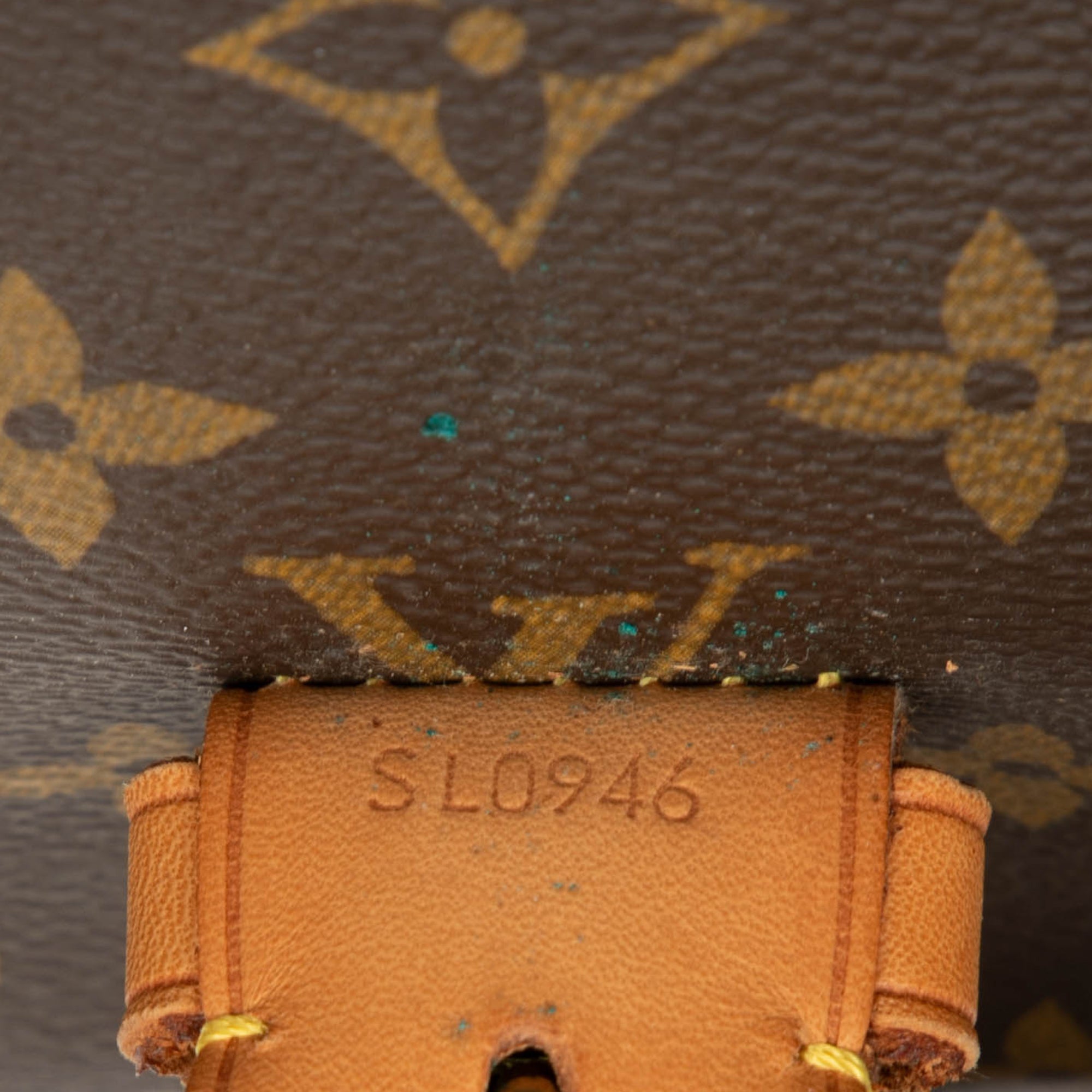 Product Details: Brown Louis Vuitton Monogram Beverly Briefcase MM Business Bag. The Beverly Briefcase GM features a monogram canvas body with vachetta leather trim, a flat vachetta leather top handle, a detachable flat vachetta leather strap, a front flap with buckle closure, and an interior zip pocket. 11" L x 15.7" W x 4.1" D, 0.8" drop. Serial number SL0946.