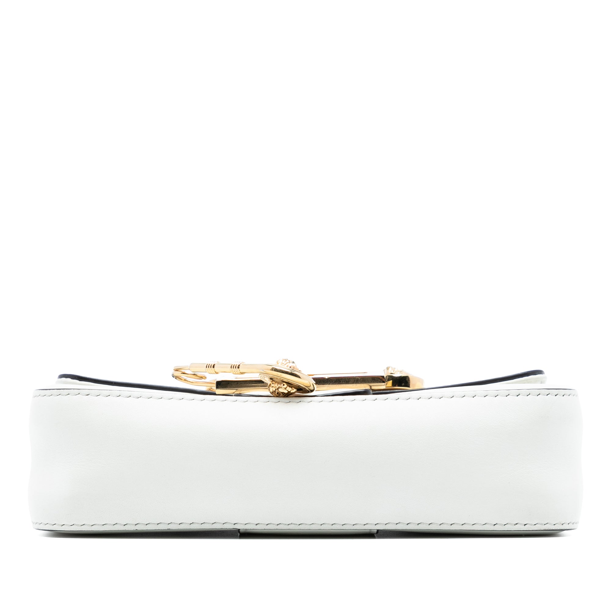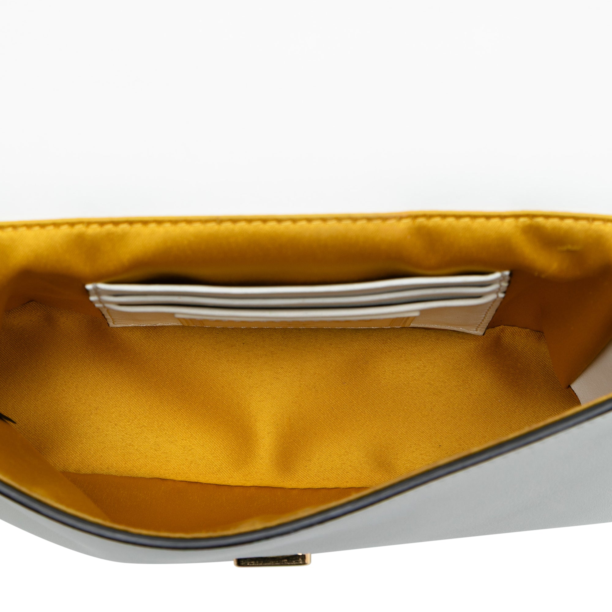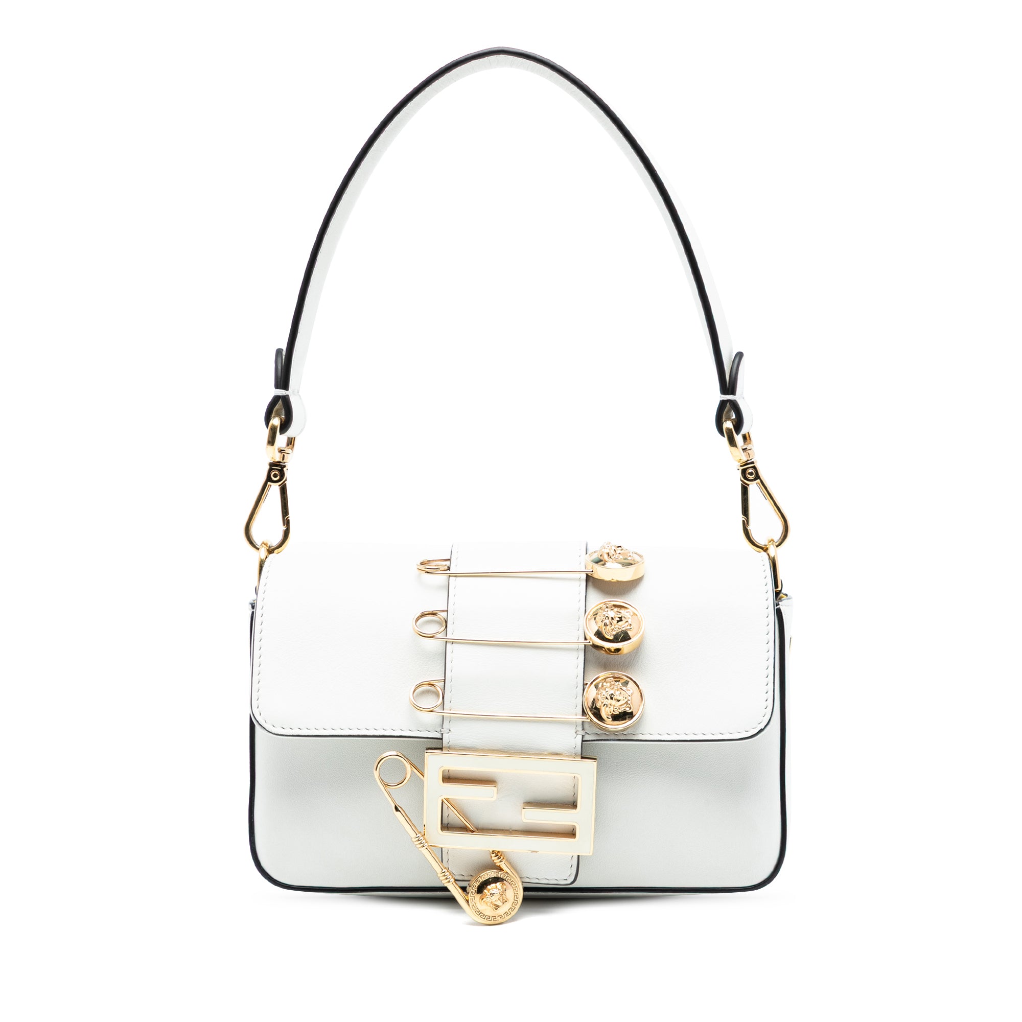 White Fendi Versace Vitello Seta Fendace Mini Brooch Baguette Satchel