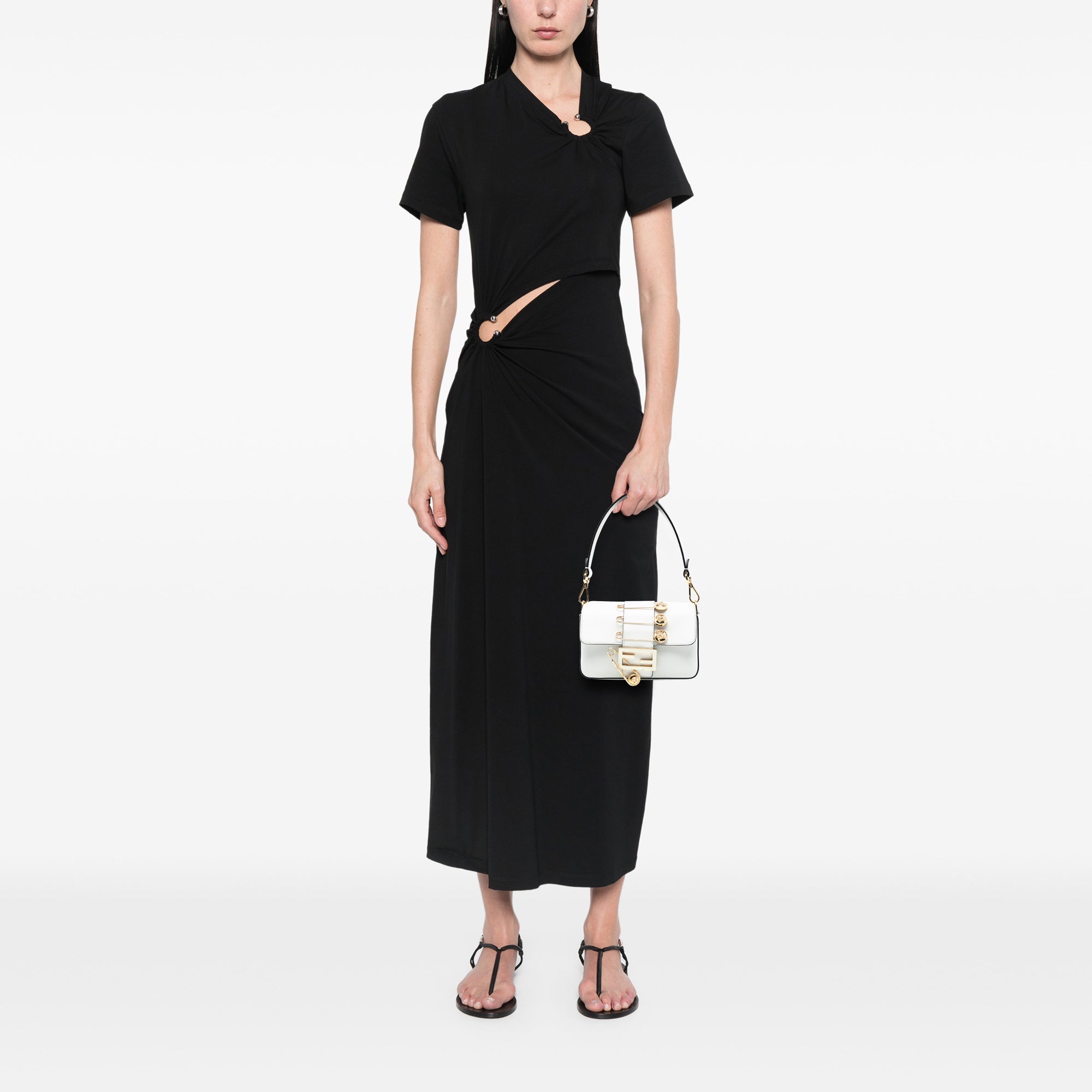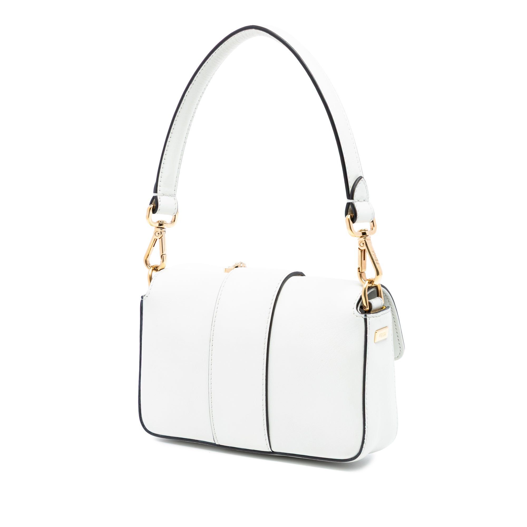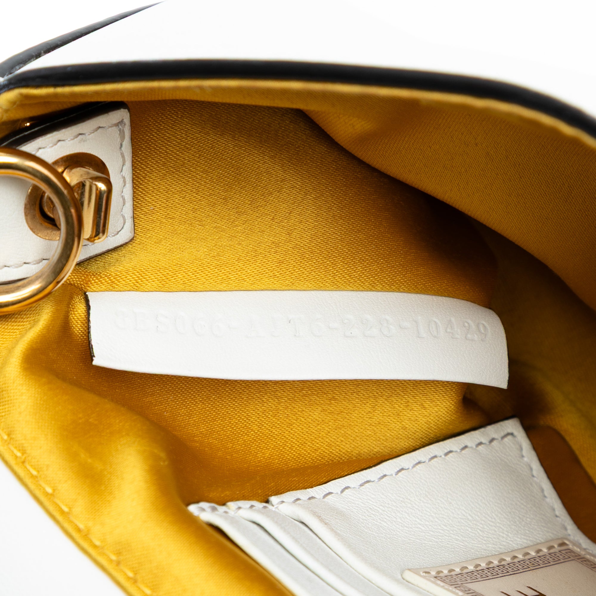 White Fendi Versace Vitello Seta Fendace Mini Brooch Baguette Satchel