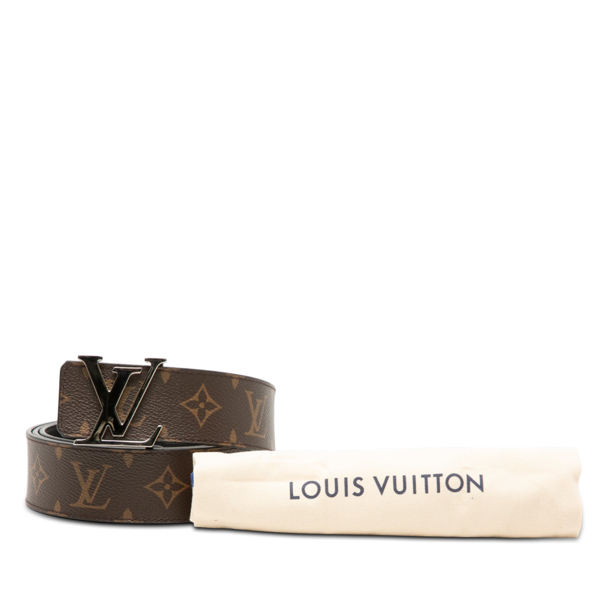 Product Details: Brown Louis Vuitton Monogram LV Initiales Reversible Belt. The Initiales Reversible Belt features a monogram canvas body with gold-tone LV logo buckle and a peg in hole closure. 48.4" L x 1.6" W x 0" D. Serial number AC4270.