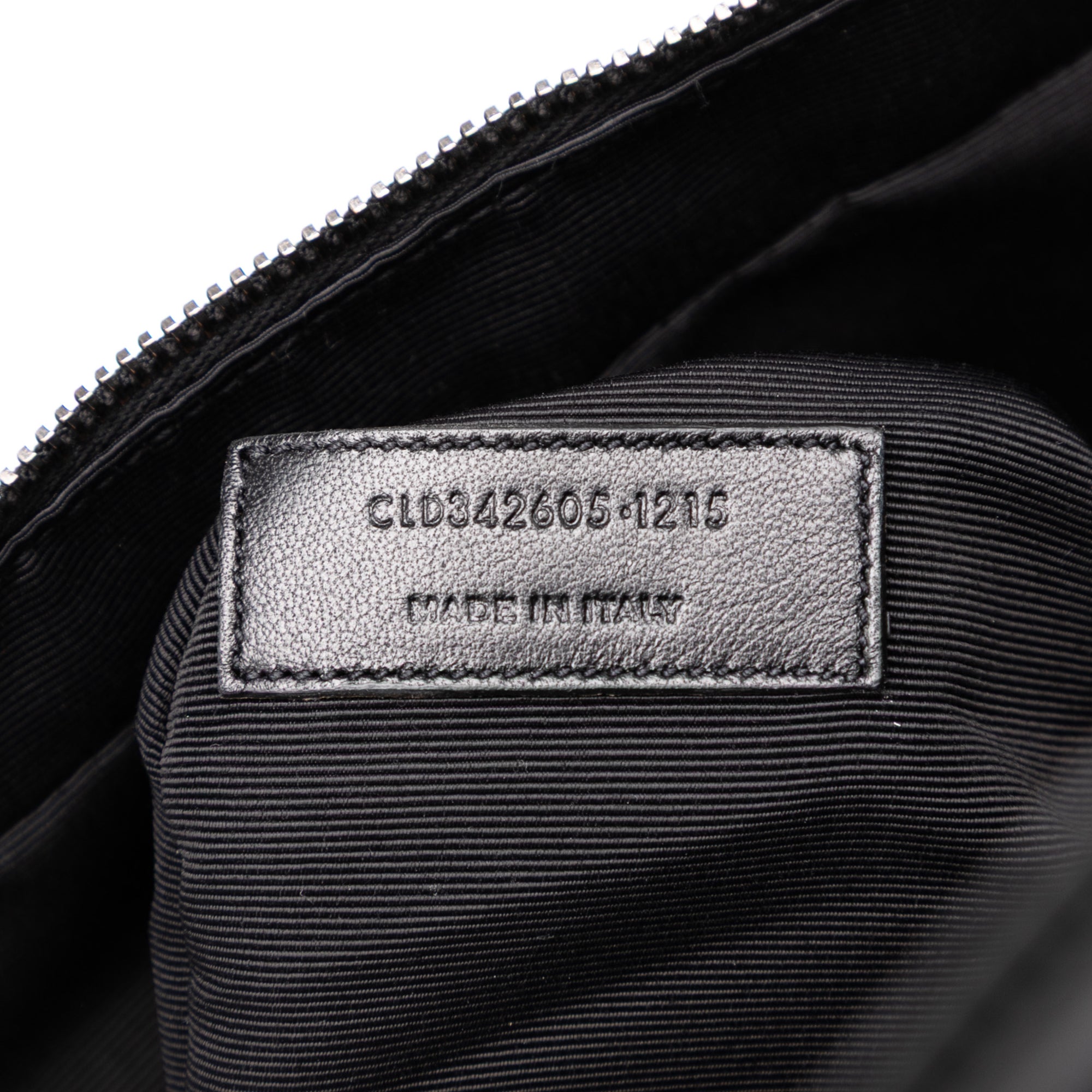 Product Details: Brown Saint Laurent Small Grain de Poudre Camouflage Museum Briefcase Business Bag. The Museum Briefcase features a printed leather body, rolled leather handles, a flat detachable strap, a top zip closure, and interior zip and slip pockets. 10.6" L x 14.2" W x 3.9" D, 4.7" drop. Serial number CLD342605 1215.