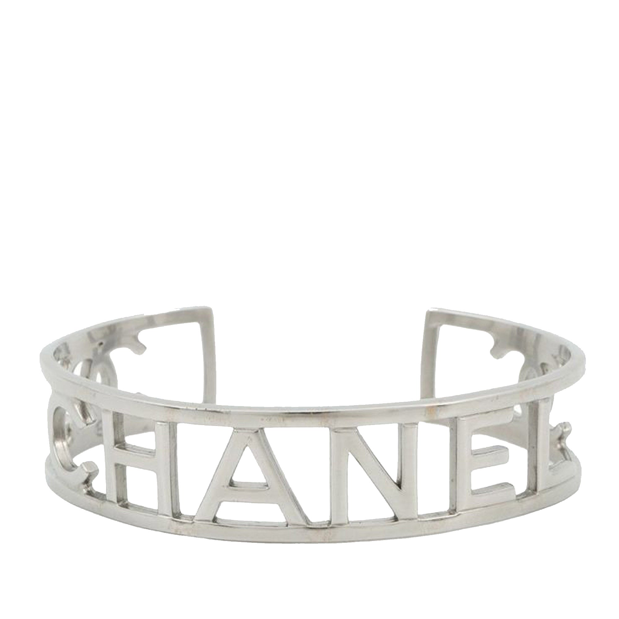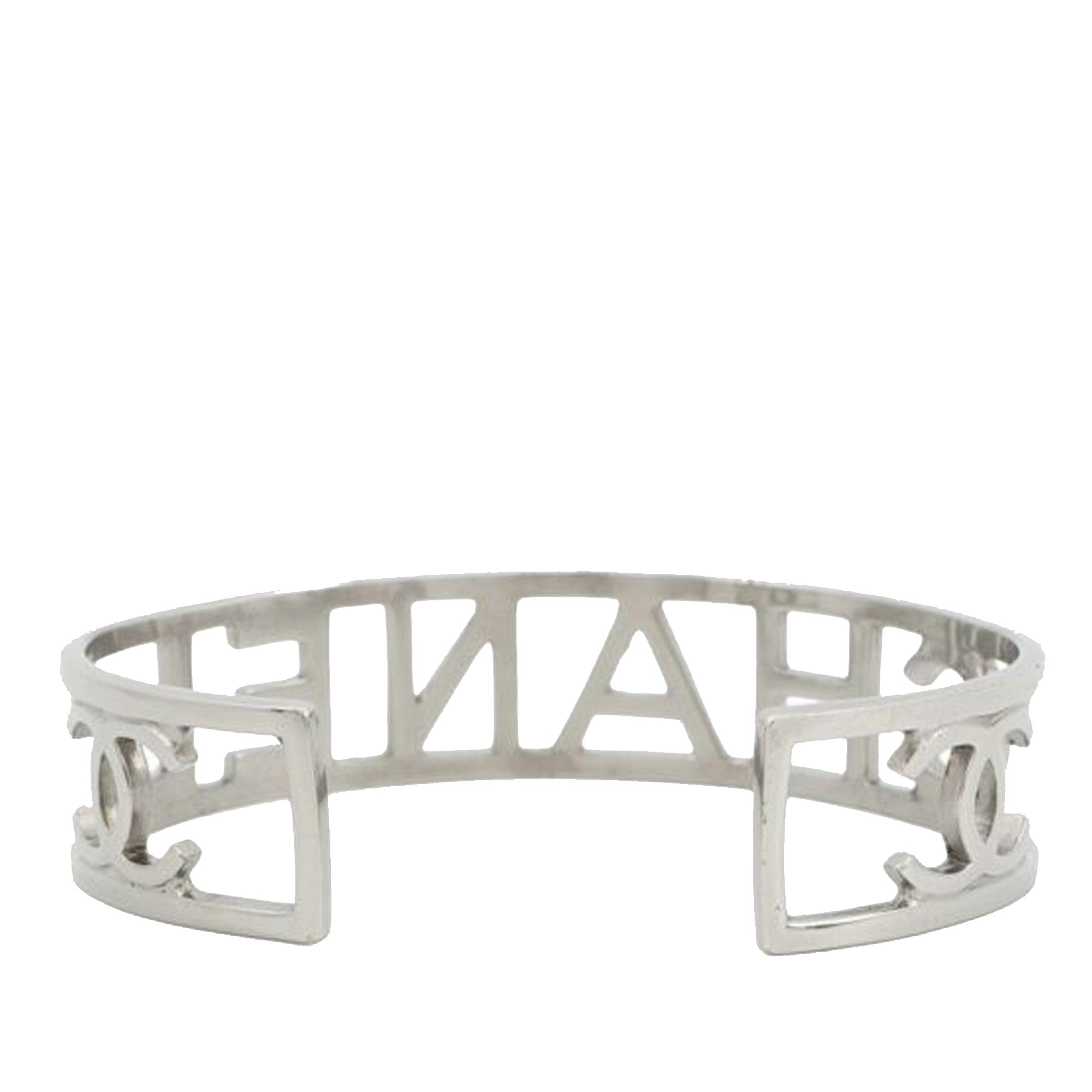 Silver Chanel Silver Plated Cutout Logo Cuff Bracelet