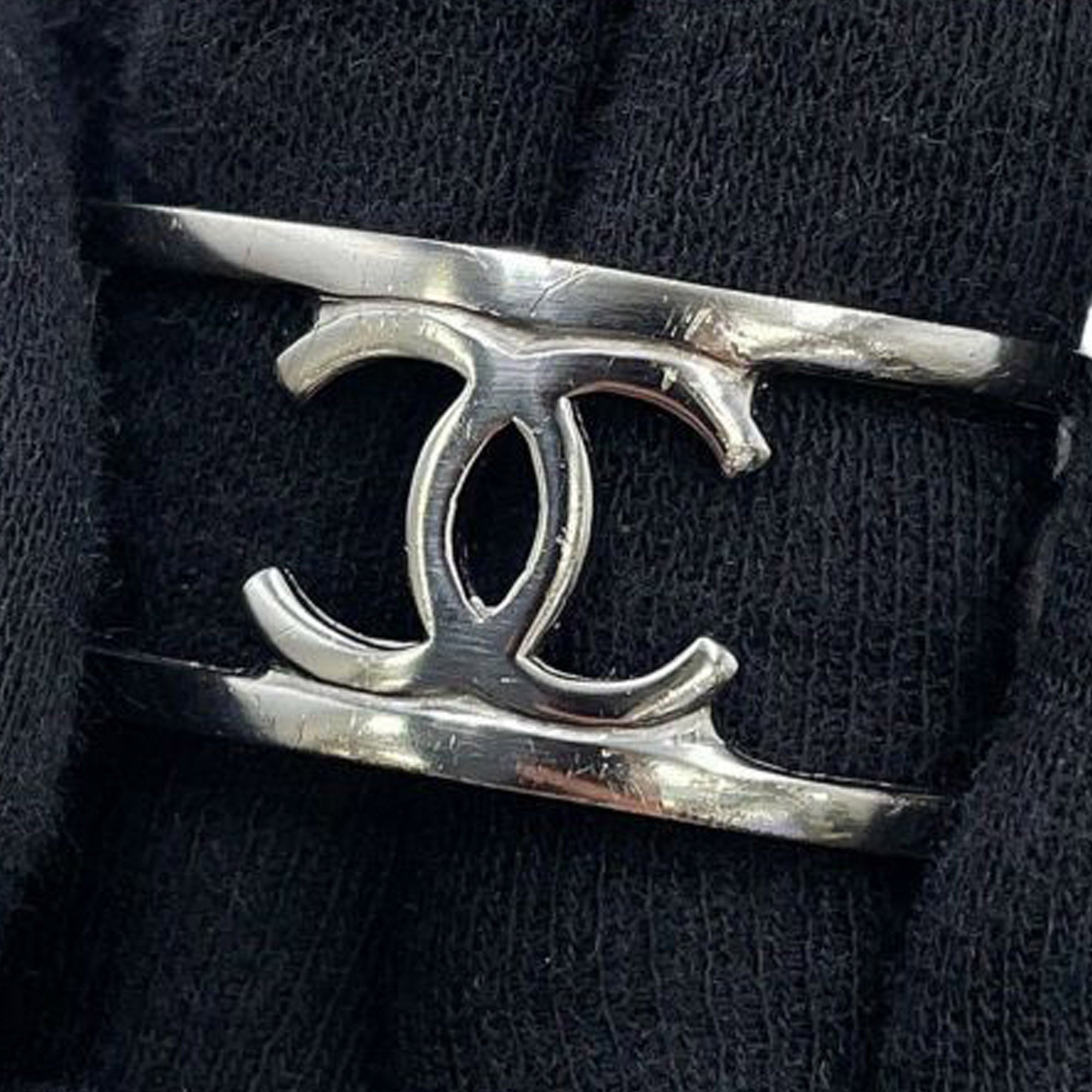 Please note this is a pre-owned item that may display signs of wear consistent with the condition listed above and shown in photos. Designer Revival guarantees this is an authentic Silver Chanel Silver Plated Cutout Logo Cuff Bracelet or 100% of your money back. Learn more about our authentication process.