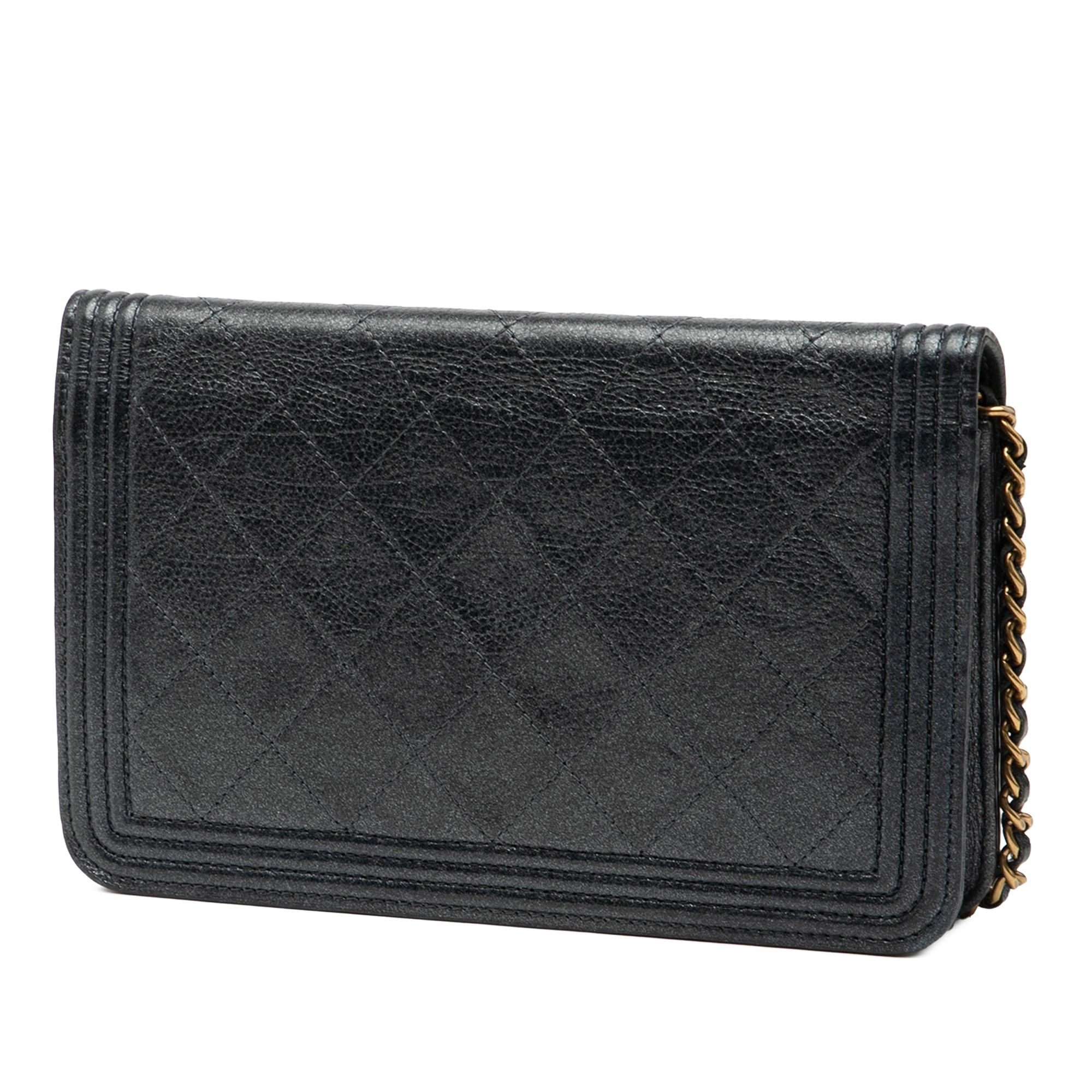 Black Chanel Quilted Calfskin Boy Wallet on Chain Crossbody Bag