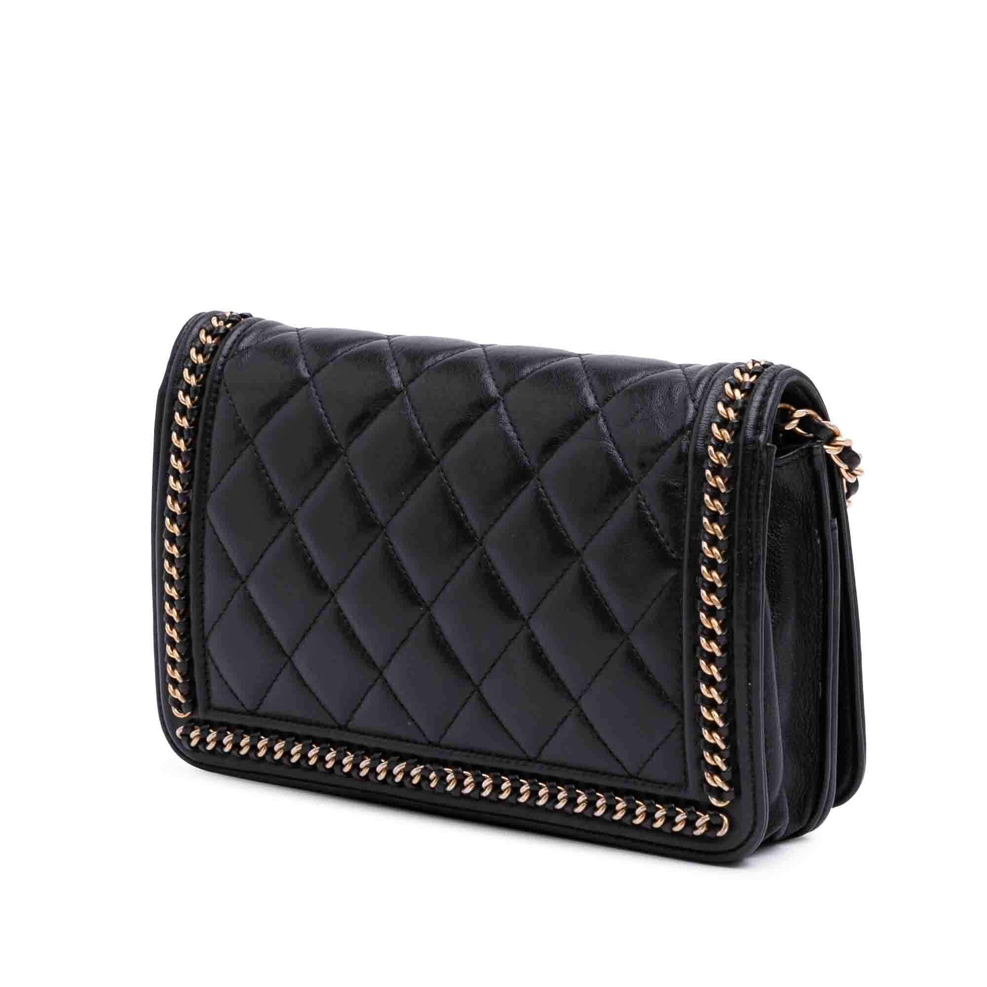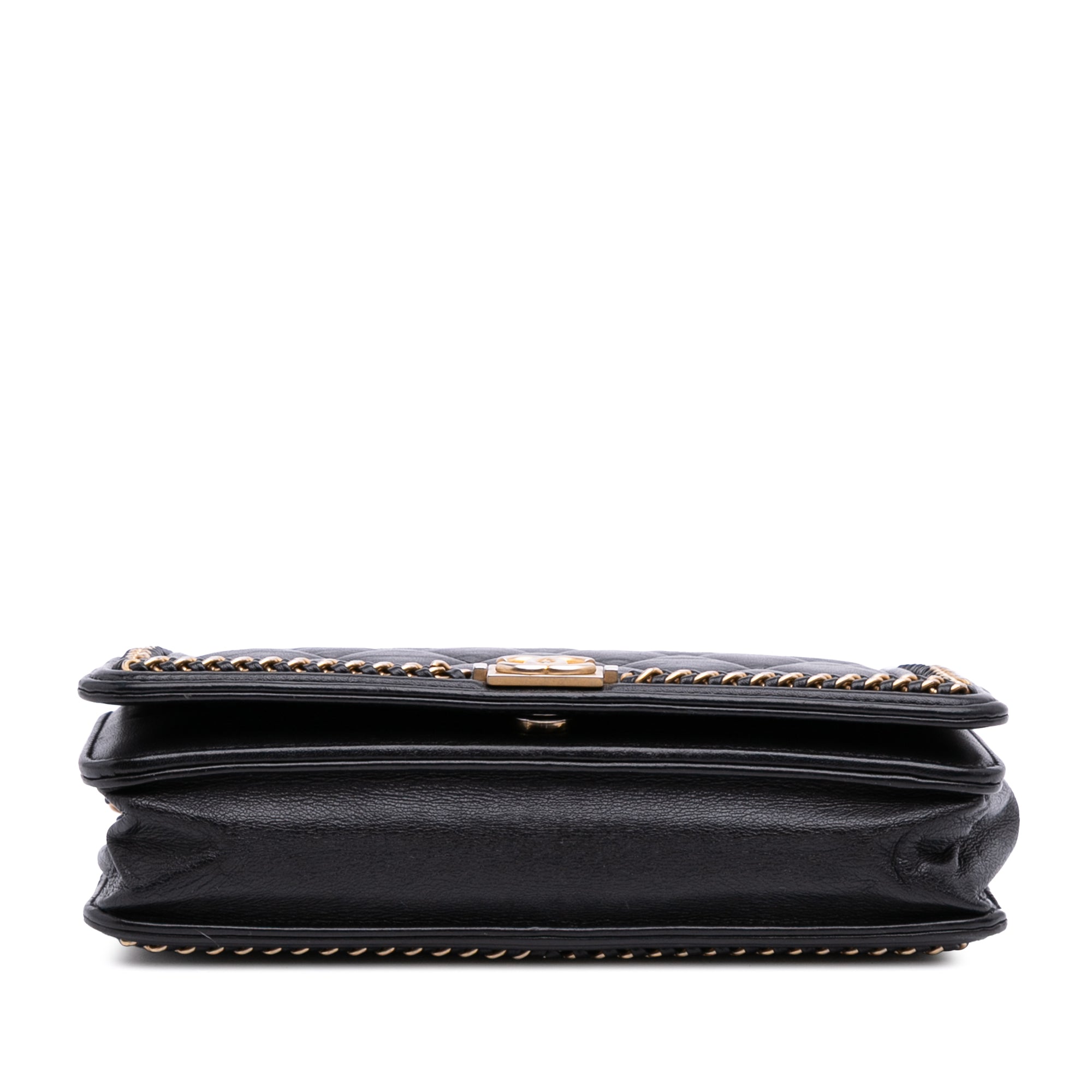 Black Chanel Quilted Calfskin Chain Around Boy Wallet on Chain Crossbody Bag