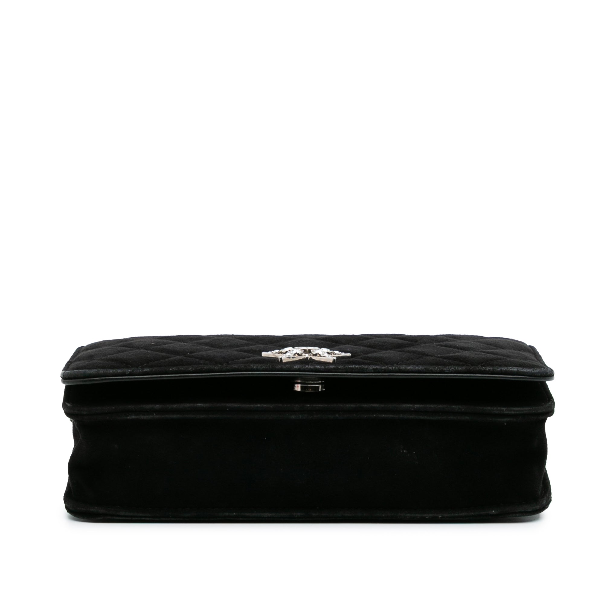 Black Chanel Quilted Suede Cocostellar Wallet on Chain Crossbody Bag