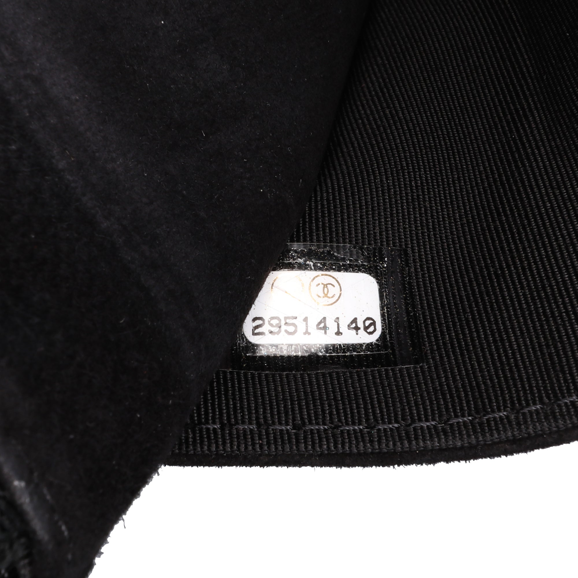 Product Details: Black Chanel Quilted Suede Cocostellar Wallet on Chain Crossbody Bag. This wallet on chain features an suede leather body, leather woven chain strap with charms, a top flap with magnetic closure, and interior zip and slip pockets. 5.1" L x 7.7" W x 2" D. Serial number 29514140.