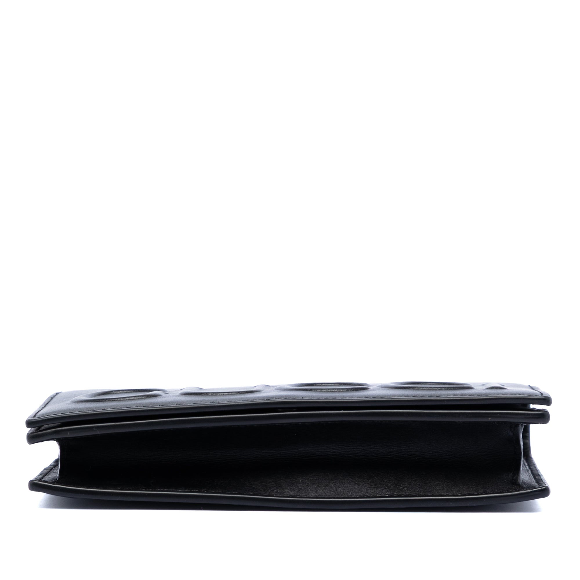 Black Gucci XL Leather Embossed Logo Wallet on Chain Crossbody Bag