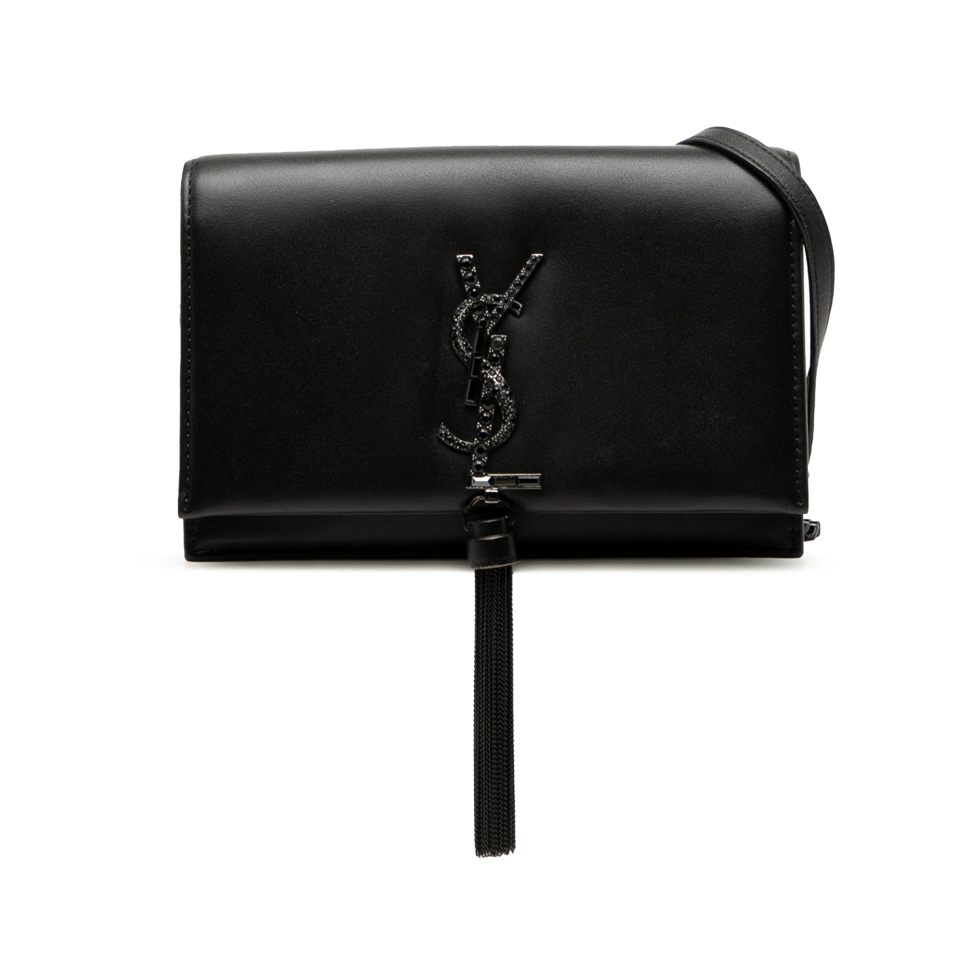 Black Saint Laurent Leather Beaded Hardware Monogram Kate Tassel Wallet on Chain Crossbody Bag