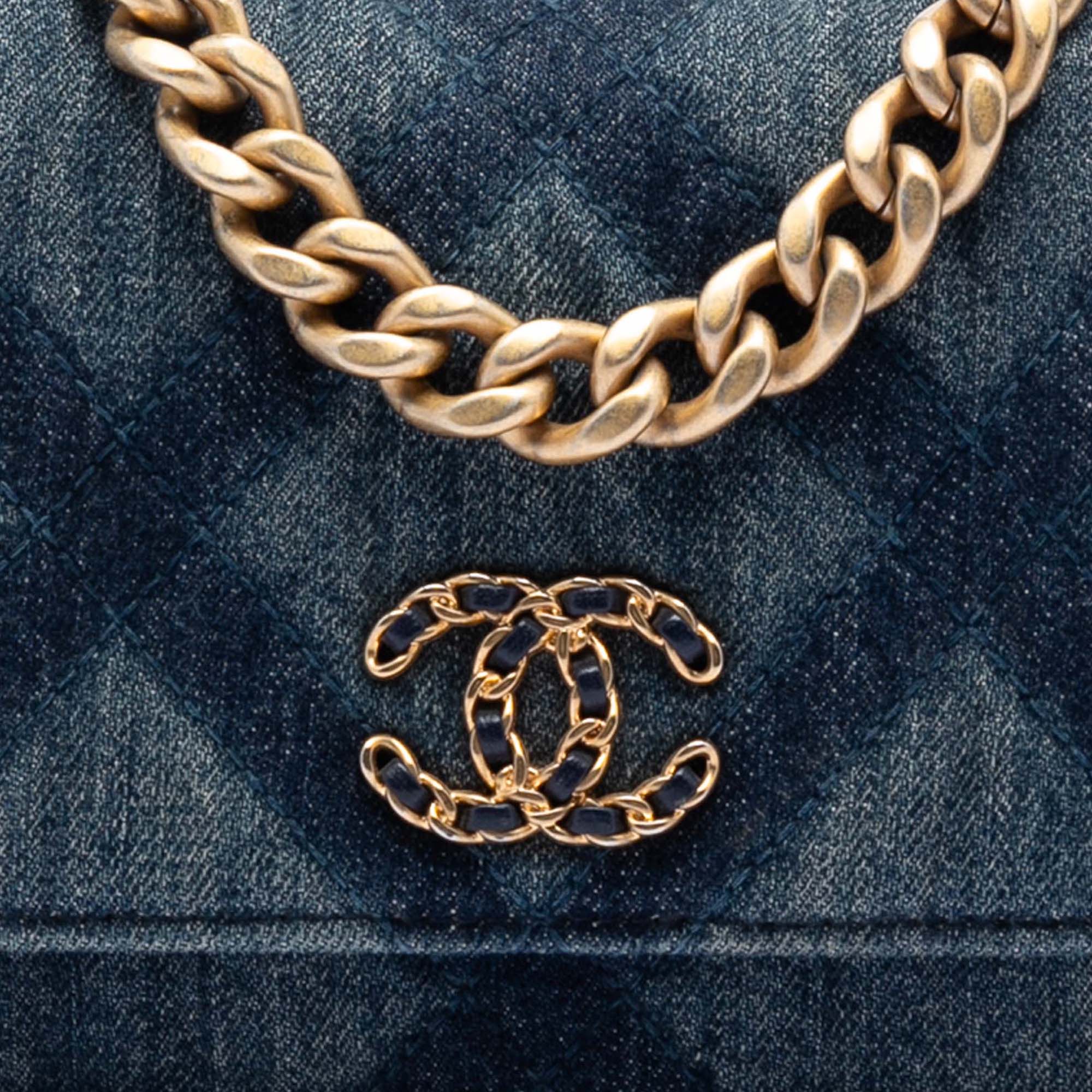 Blue Chanel Denim 19 Flap Wallet On Chain Satchel