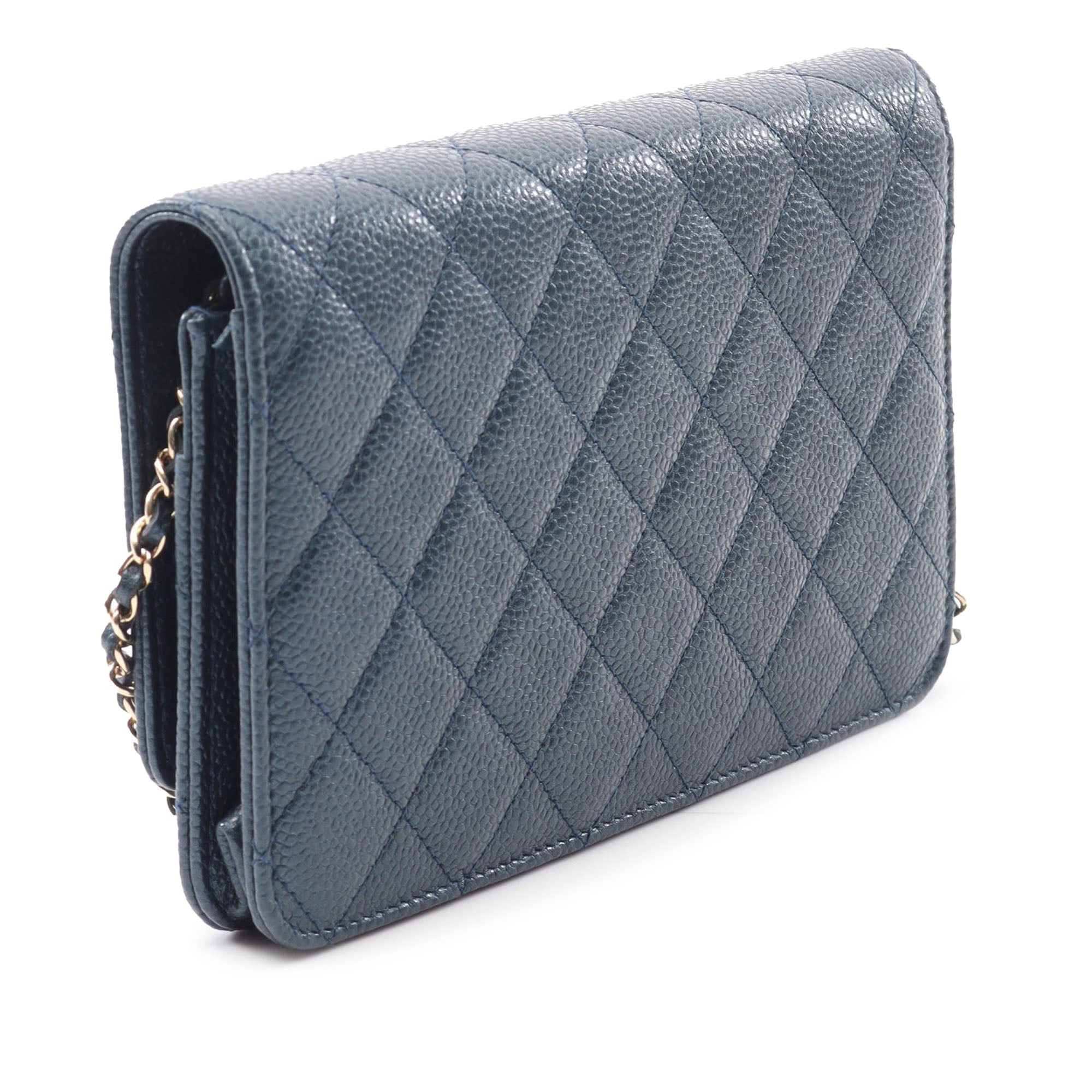 Blue Chanel Quilted Caviar Golden Class Wallet On Chain Crossbody Bag