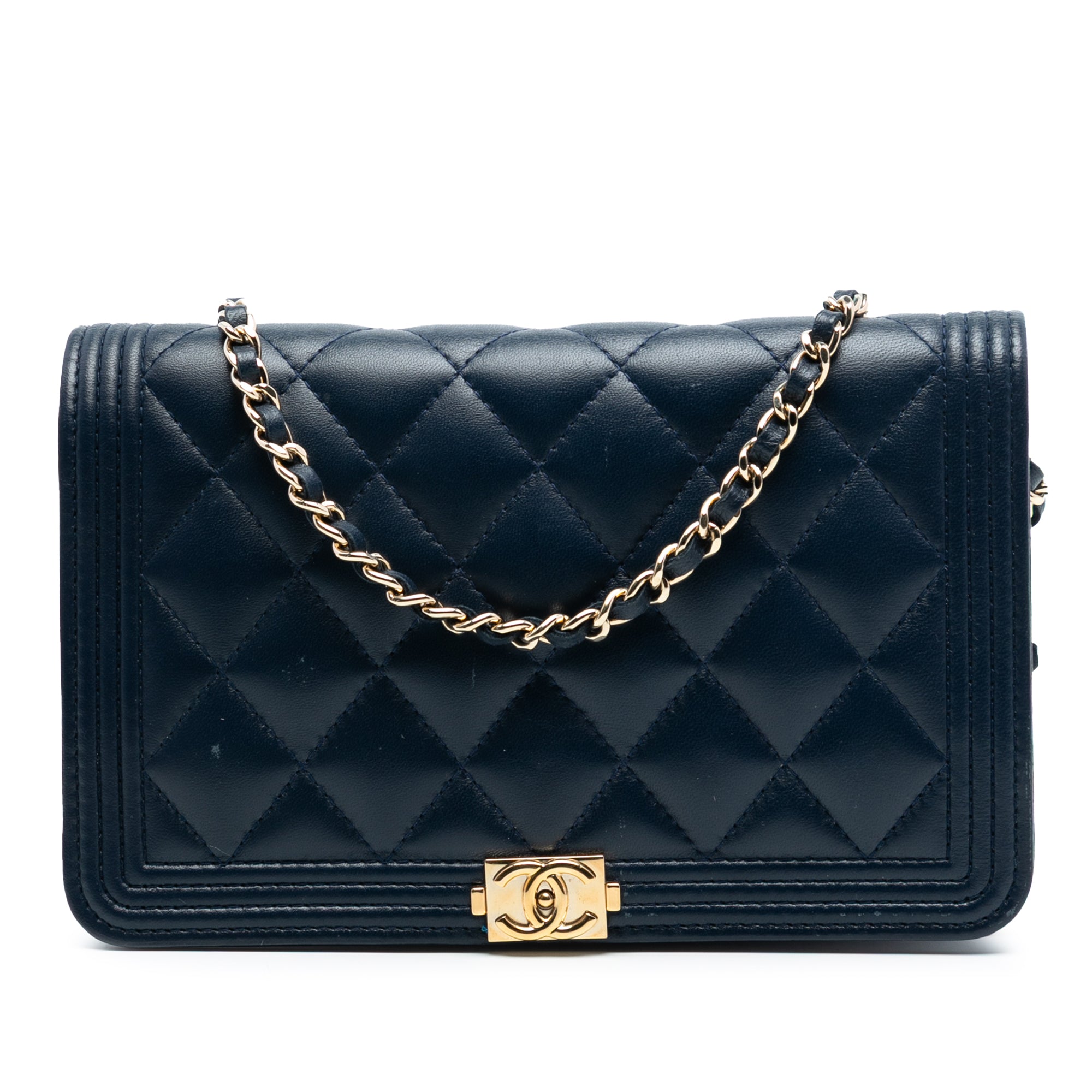 Blue Chanel Quilted Lambskin Boy Wallet On Chain Crossbody Bag