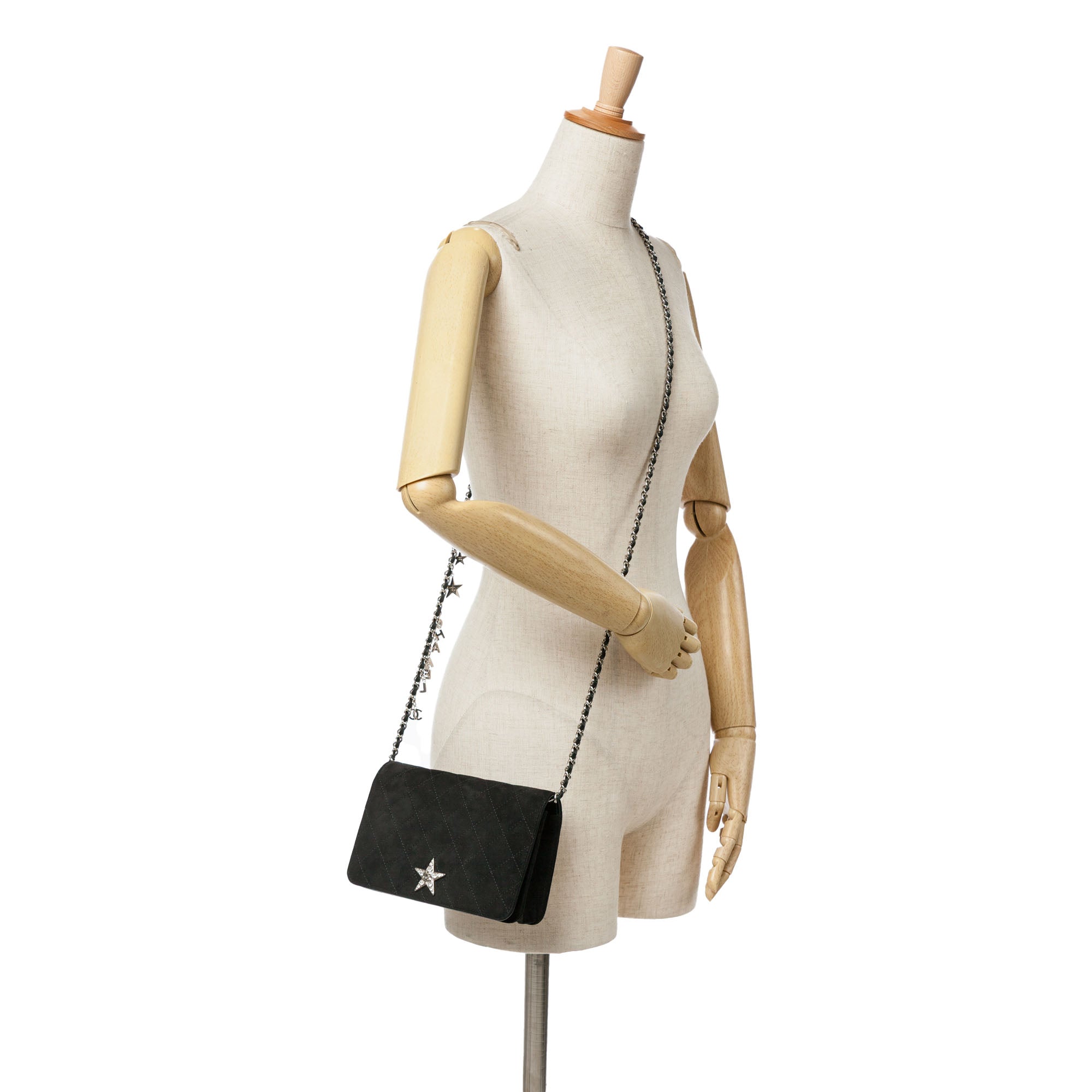 Black Chanel Quilted Suede Cocostellar Wallet on Chain Crossbody Bag