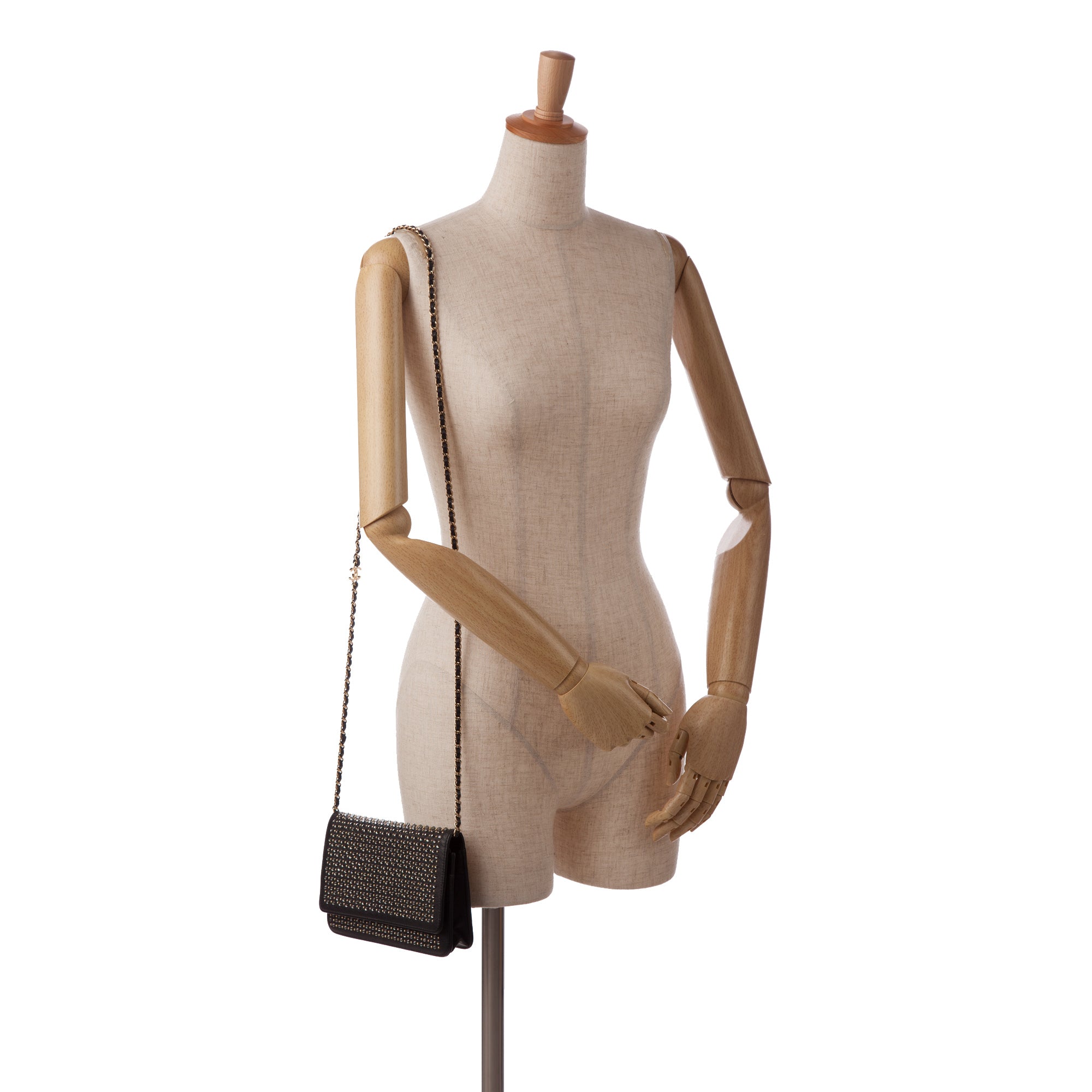 Please note this is a pre-owned item that may display signs of wear consistent with the condition listed above and shown in photos. Designer Revival guarantees this is an authentic Black Chanel Studded Leather Wallet on Chain Crossbody Bag or 100% of your money back. Learn more about our authentication process.