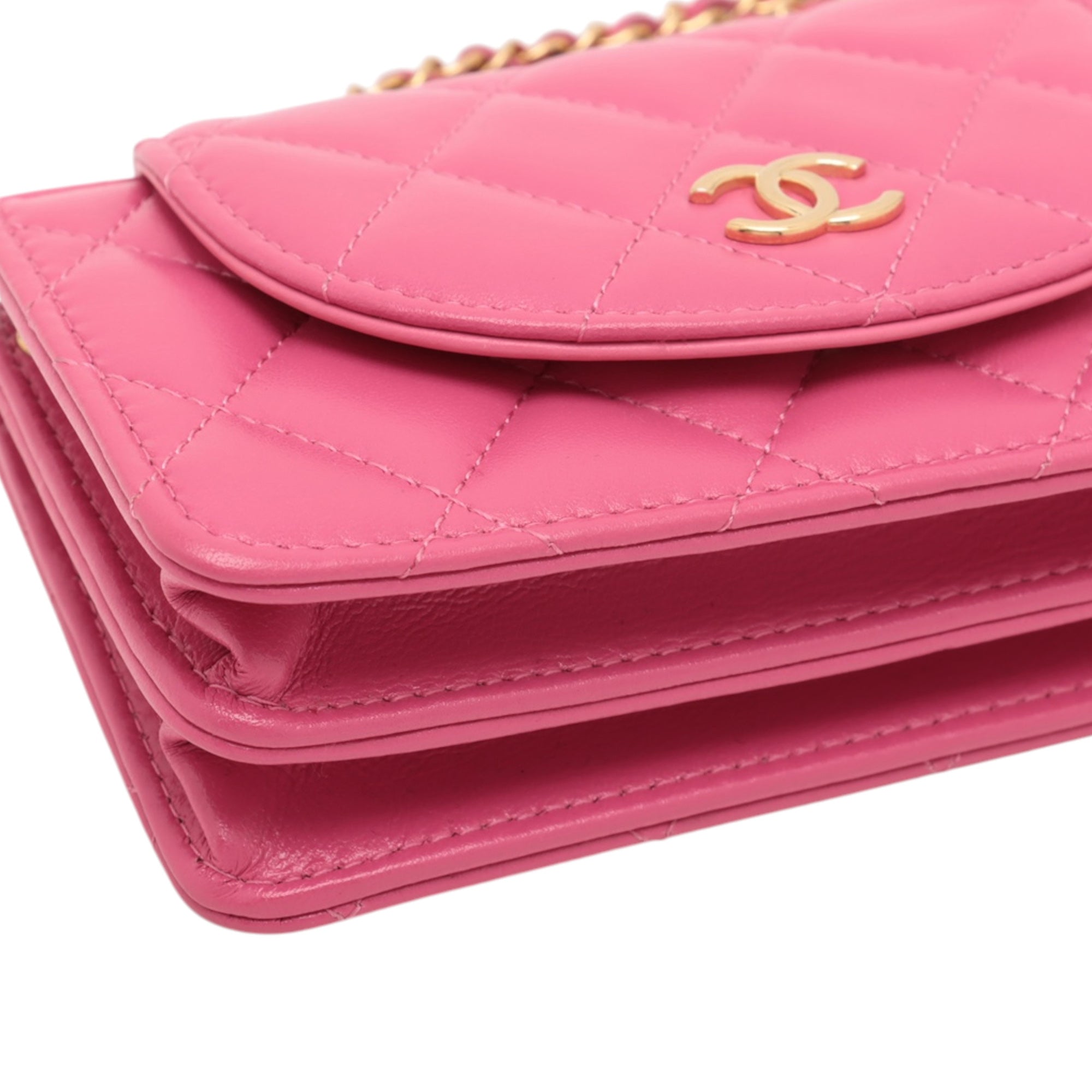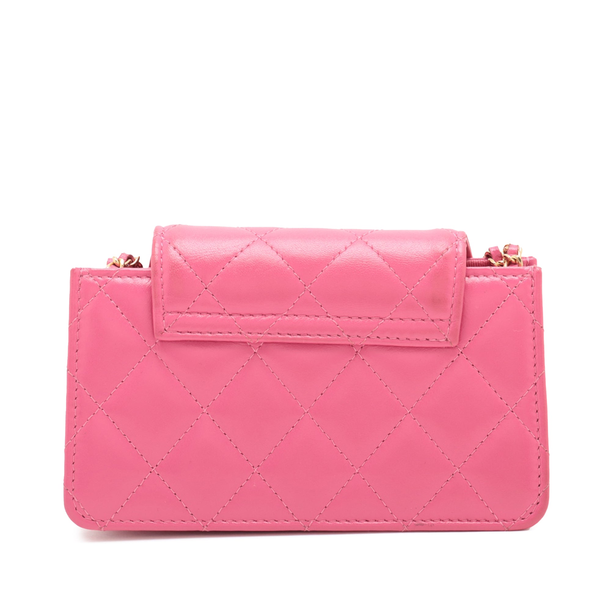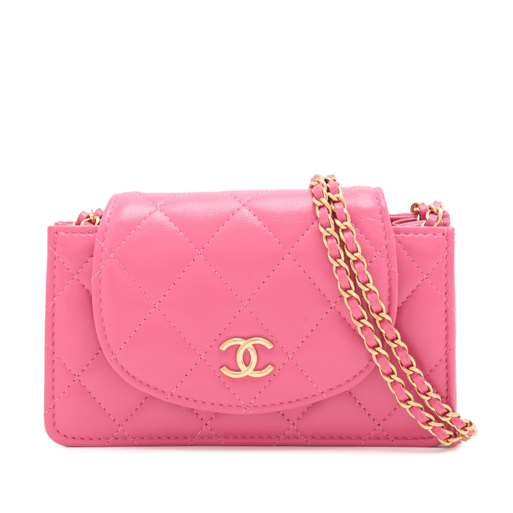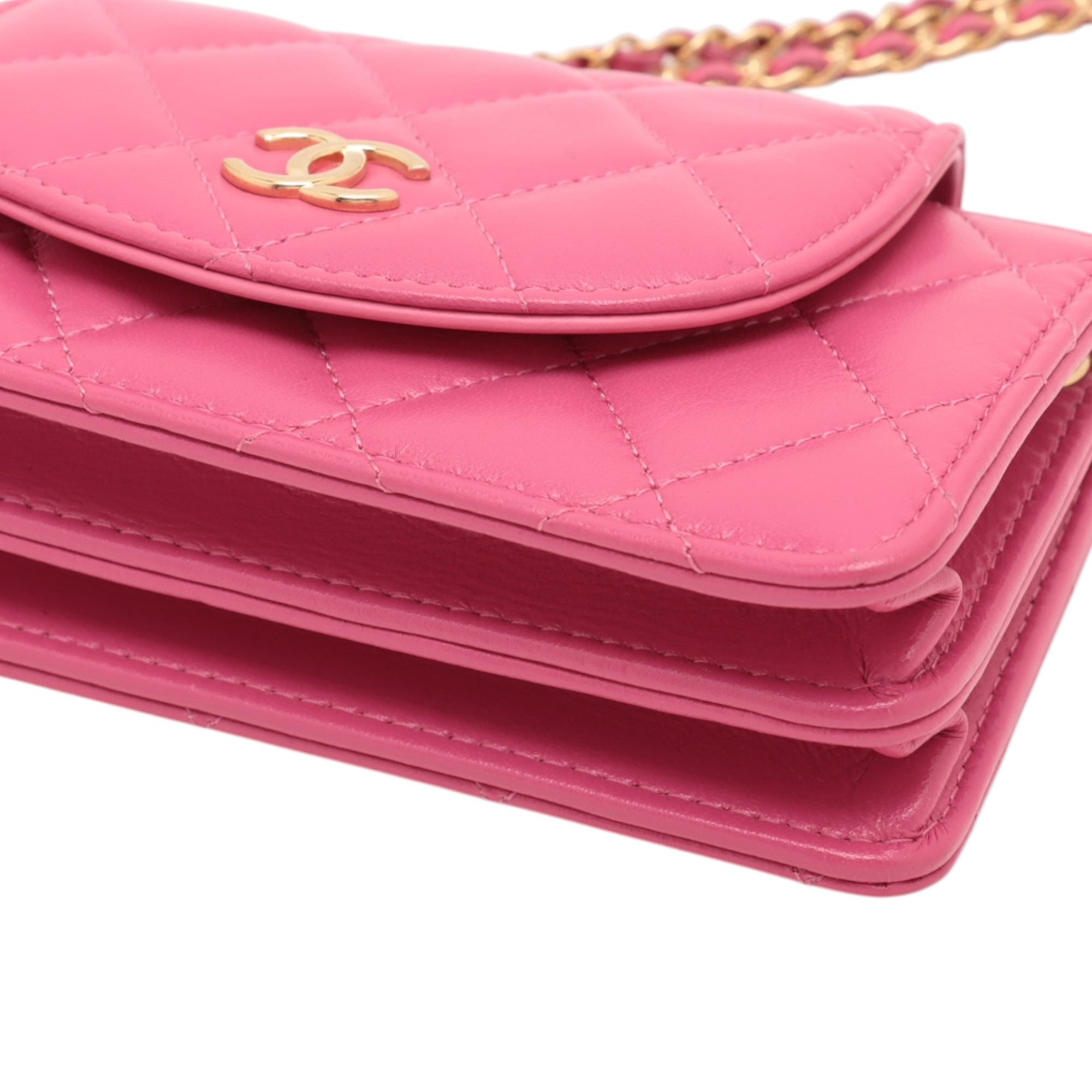 Pink Chanel Mini CC Quilted Lambskin Wallet on Chain Crossbody Bag