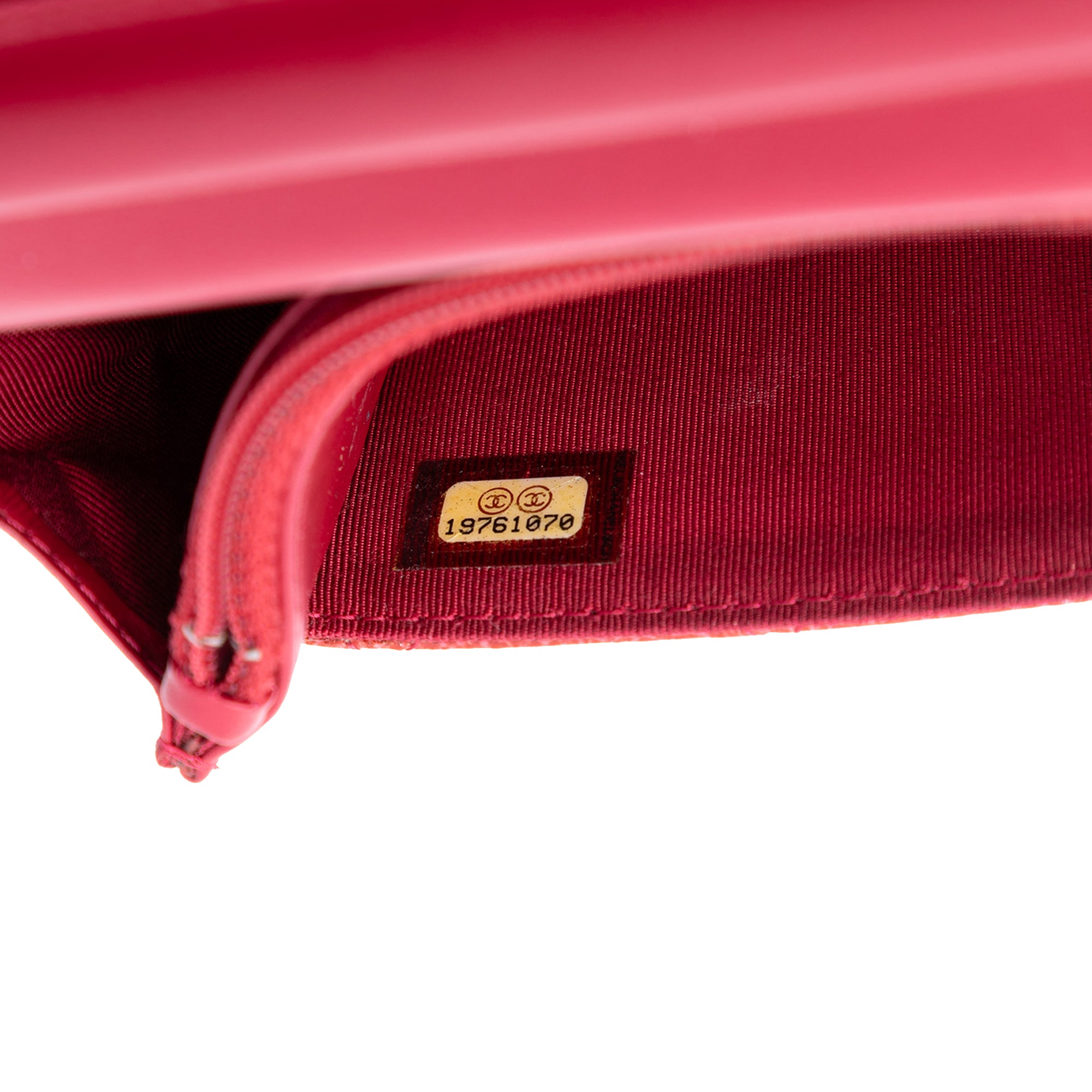 Product Details: Red Chanel Paris Dallas CC Quilted Patent Goatskin Wallet on Chain Crossbody Bag. This wallet on chain features a quilted patent goatskin leather body, a woven chain strap, a flap with snap closure, and interior zip and slip pockets. 4.7" L x 7.7" W x 1.8" D. Serial number 19761070.