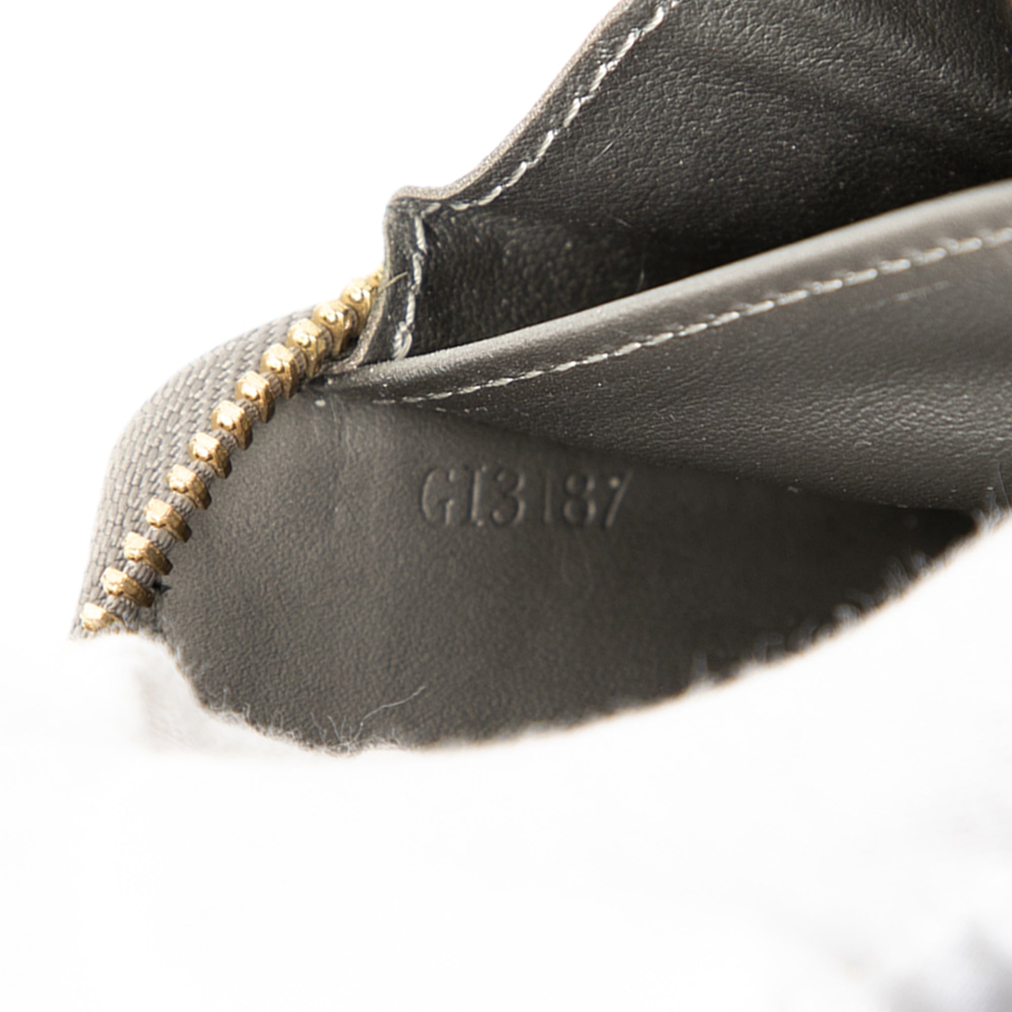 Product Details: Silver Louis Vuitton Monogram Vernis Zippy Long Wallet. This long wallet features a monogram vernis leather body, a zip around closure, and interior zip and slip pockets. 3.9" L x 7.7" W x 0.9" D. Serial number GI3187.