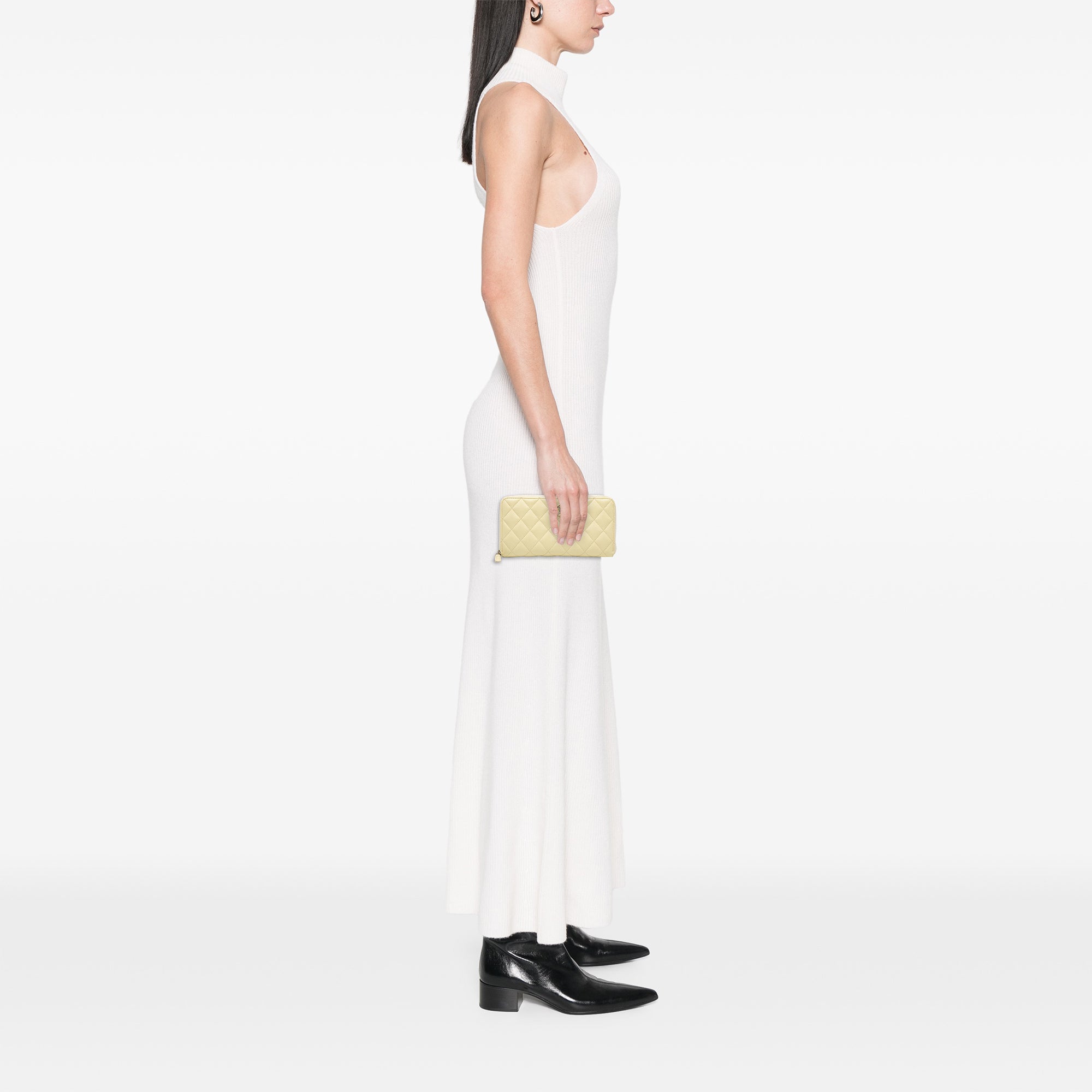 Yellow Chanel CC Quilted Caviar Enamel Rhinestone Zip Around Long Wallet