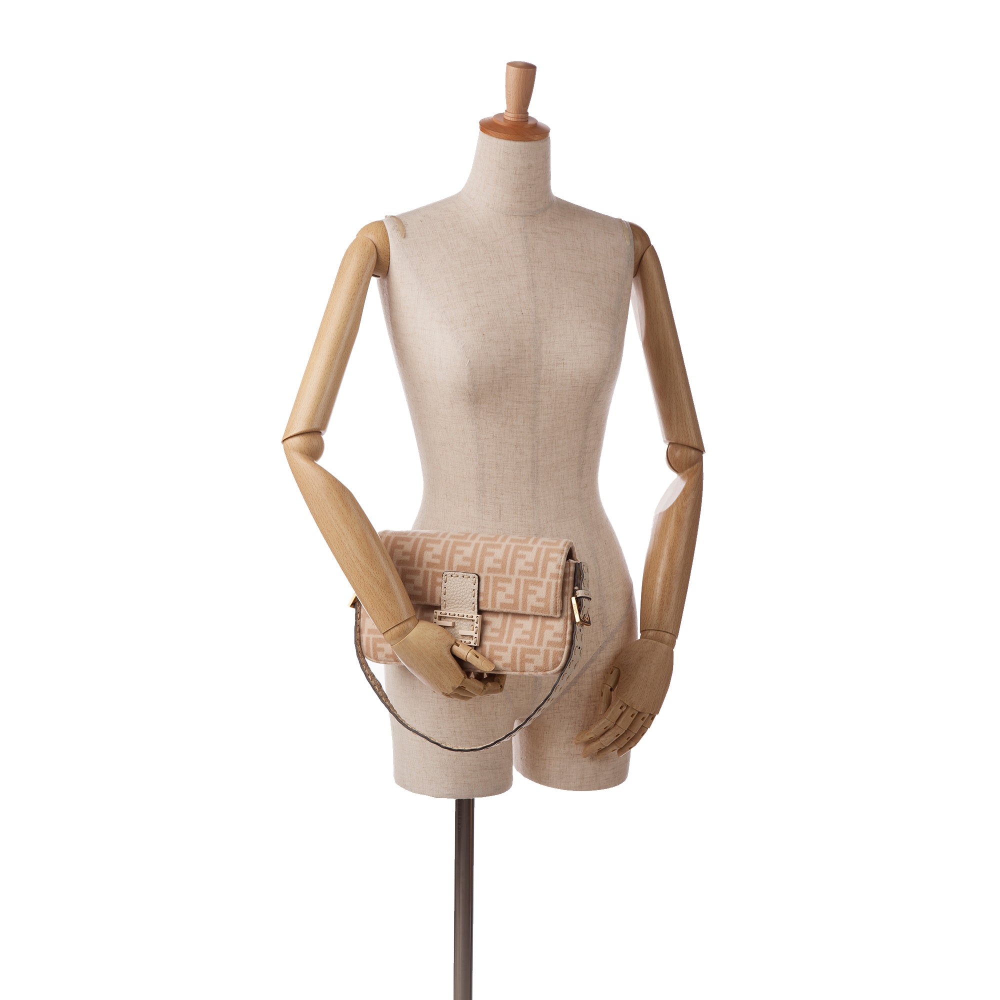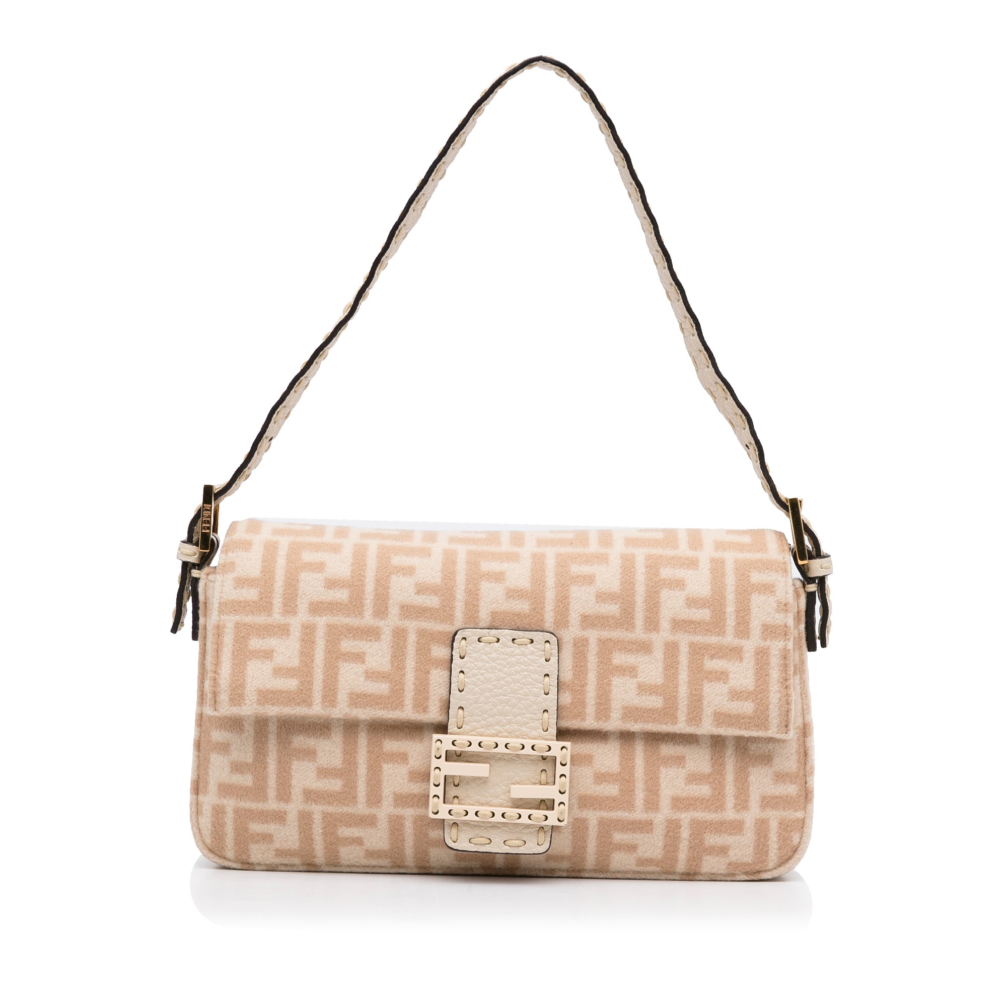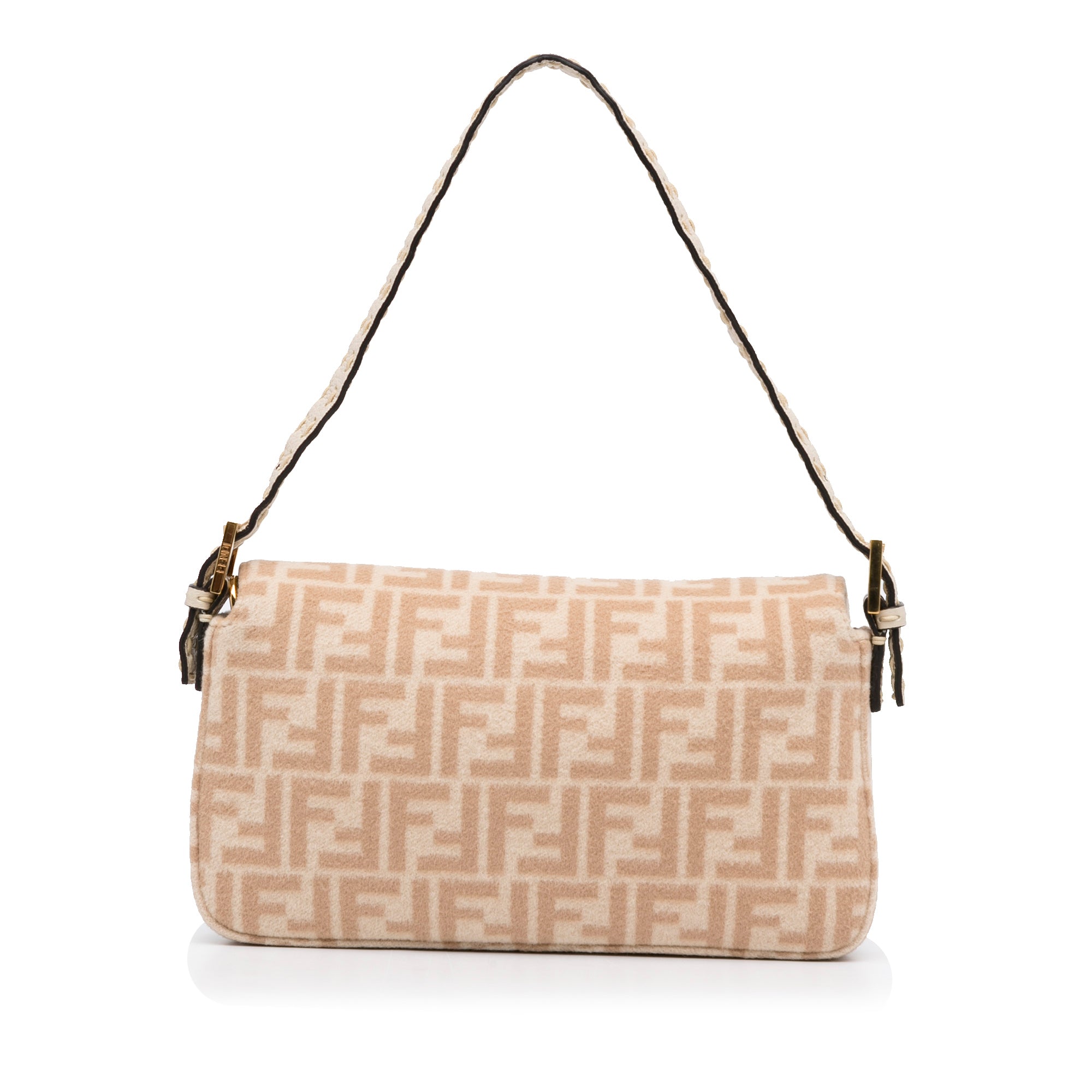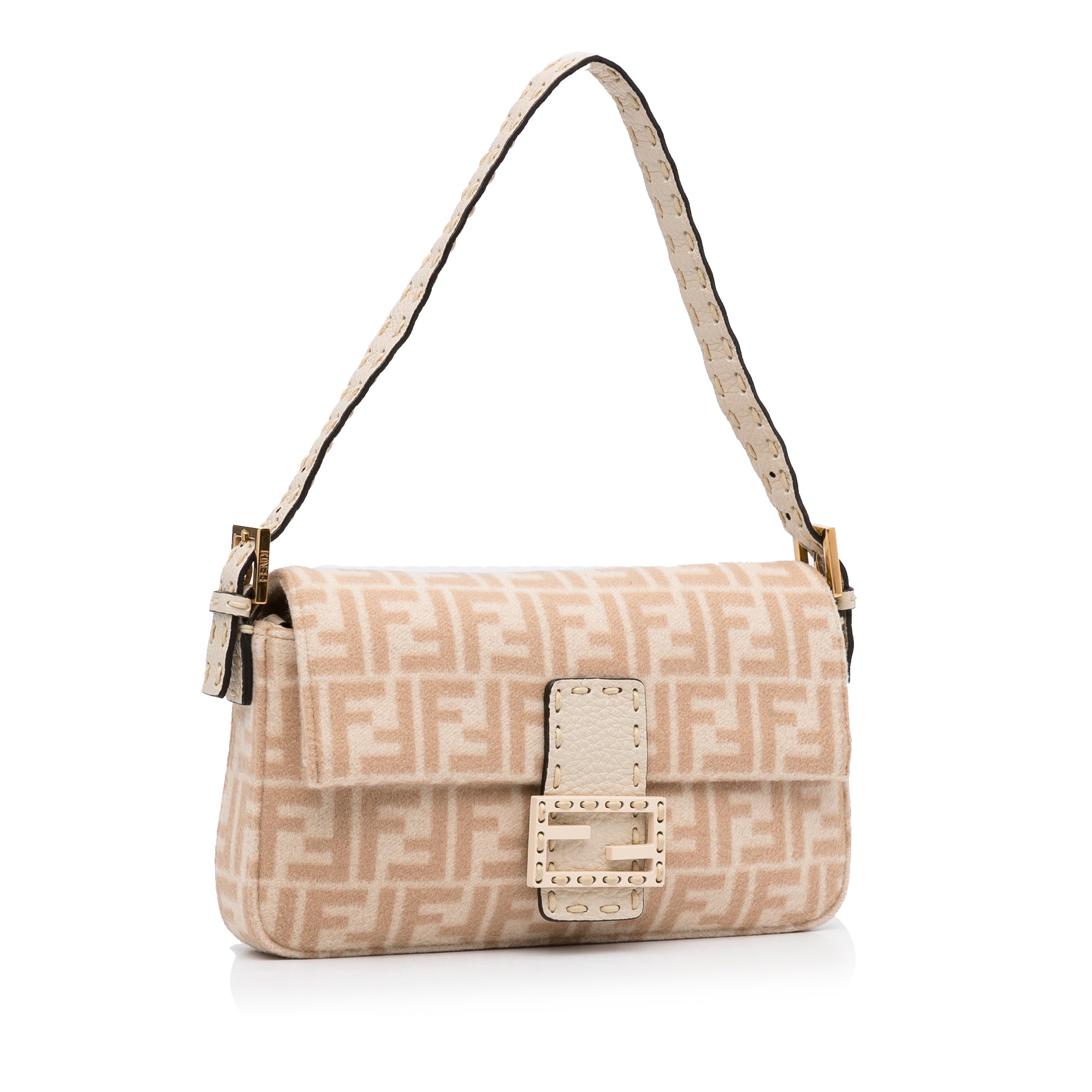 Beige Fendi Zucca Wool Selleria Baguette Shoulder Bag
