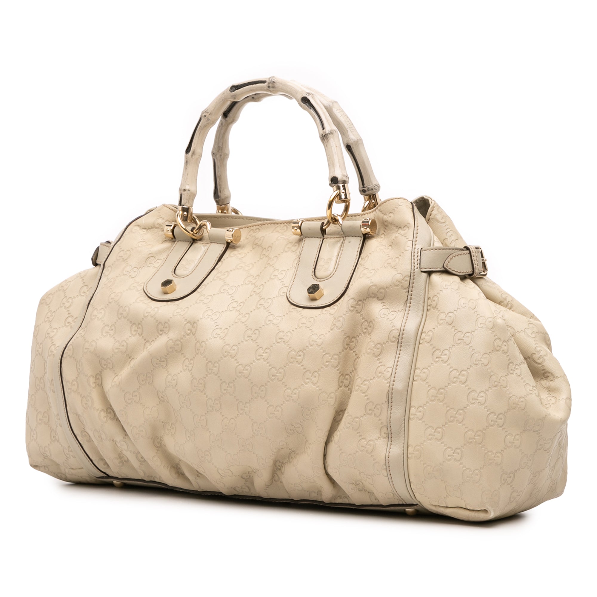 Beige Gucci Guccissima Bamboo Dialux Tote