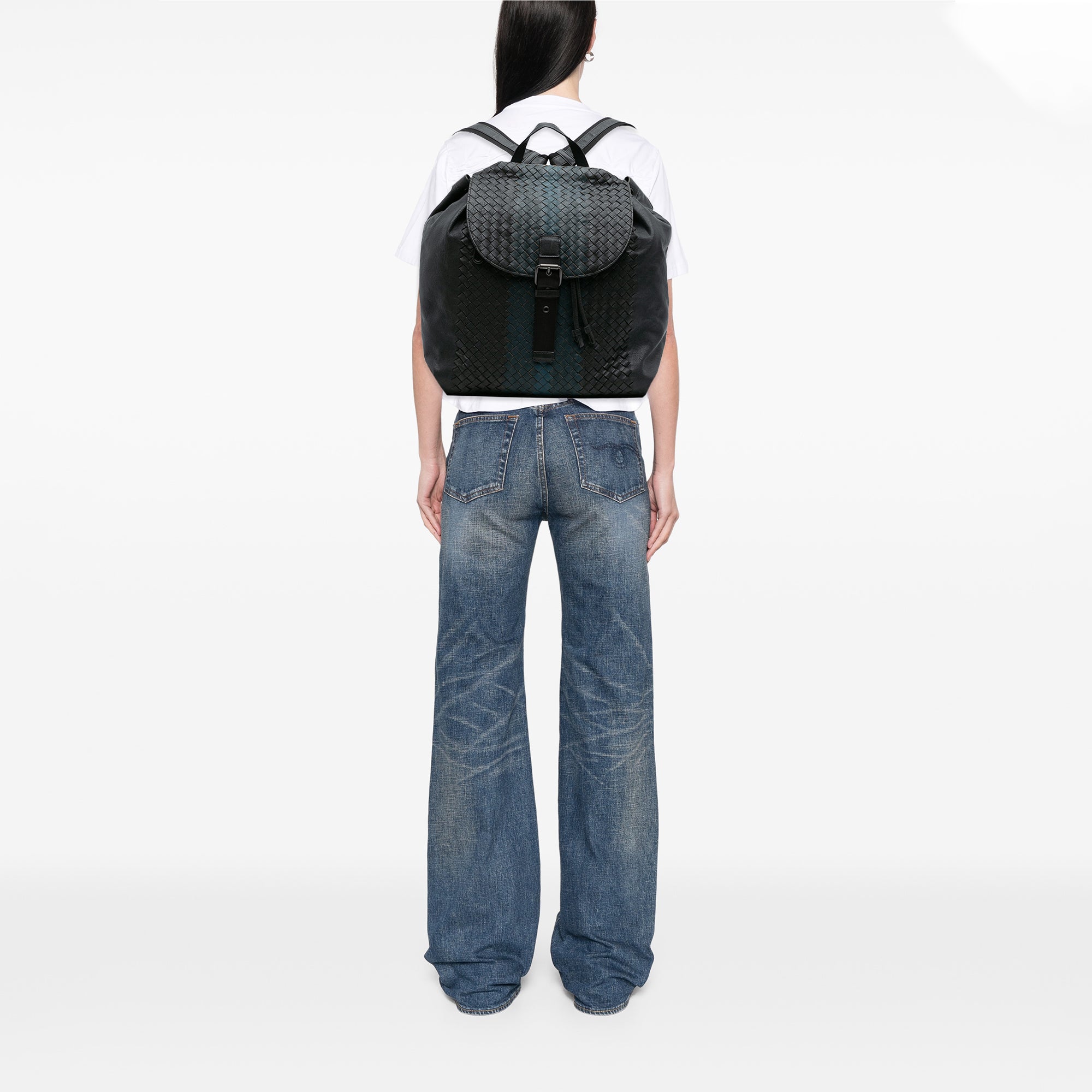 Black Bottega Veneta Nappa Intrecciato Drawstring Flap Backpack