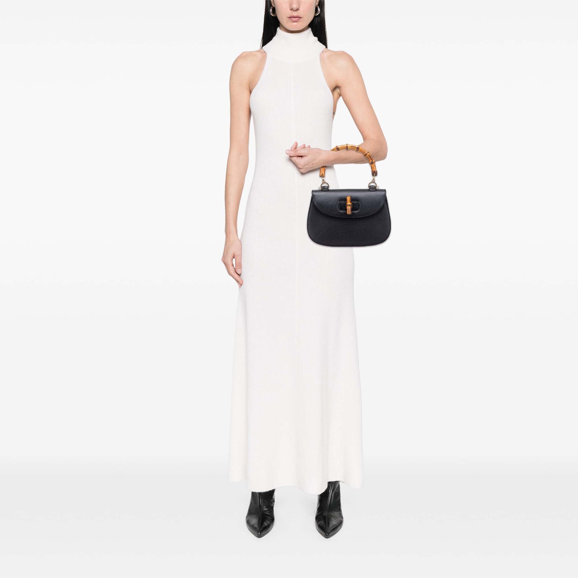 Black Gucci Calfskin Bamboo Night Satchel - Designer Revival Black Gucci Calfskin Bamboo Night Satchel - Designer Revival