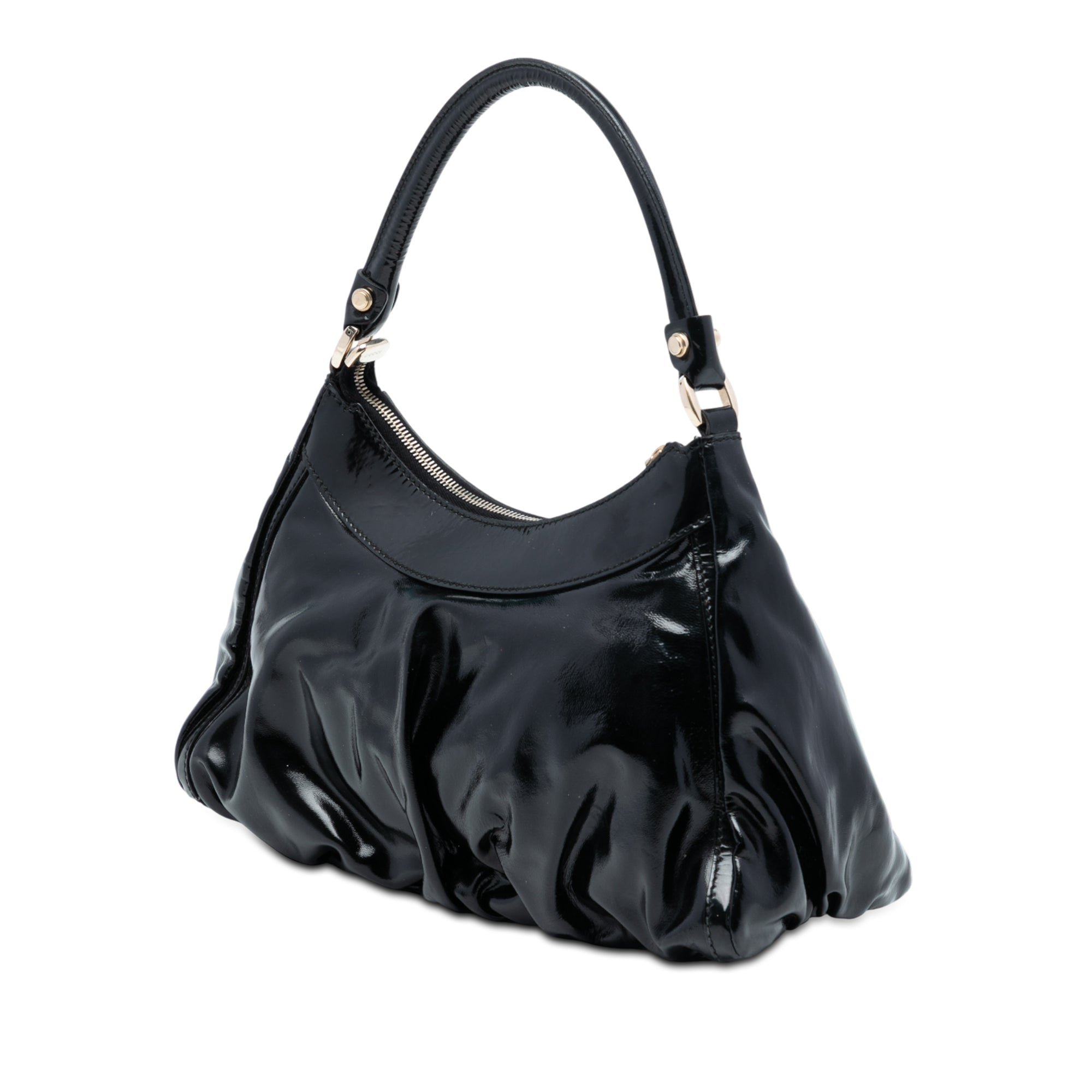 Please note this is a pre-owned item that may display signs of wear consistent with the condition listed above and shown in photos. Designer Revival guarantees this is an authentic Black Gucci Patent Abbey D Ring Handbag or 100% of your money back. Learn more about our authentication process.
