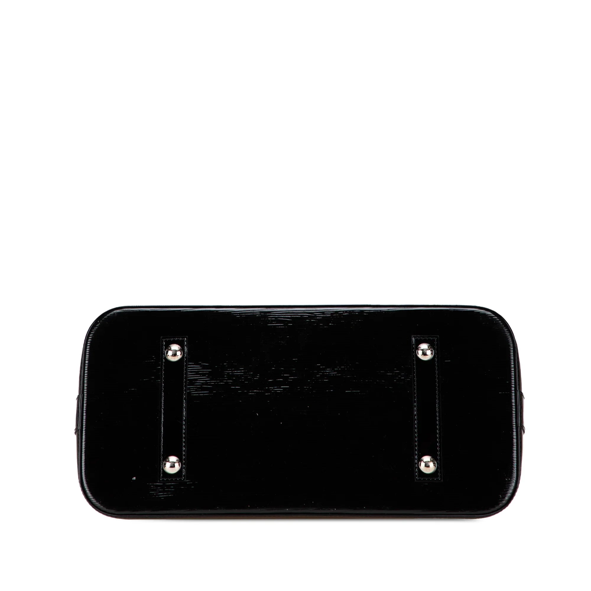 Product Details: Black Louis Vuitton Electric Epi Alma GM Handbag. The Alma GM features an electric epi leather body, rolled leather handles, a top zip closure, and interior slip pockets. 11" L x 15.2" W x 7.5" D, 4.3" drop. Serial number MI0180.