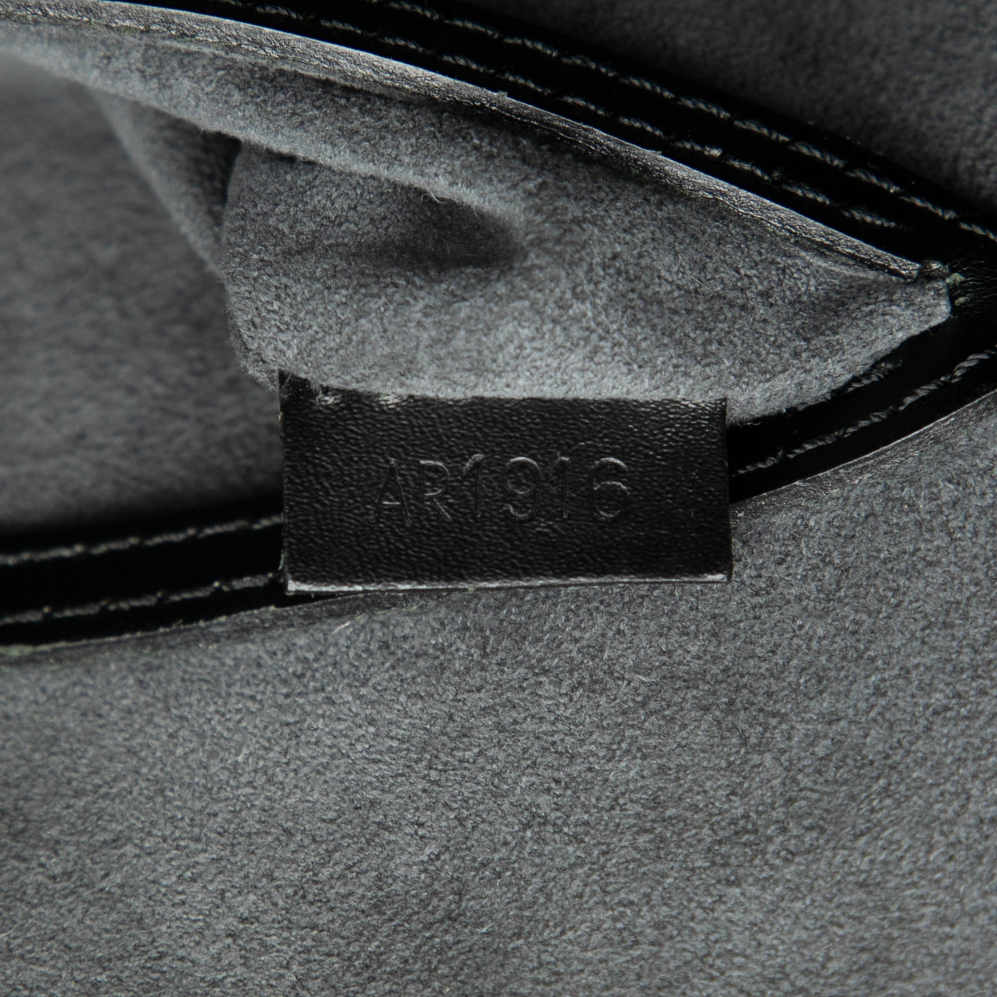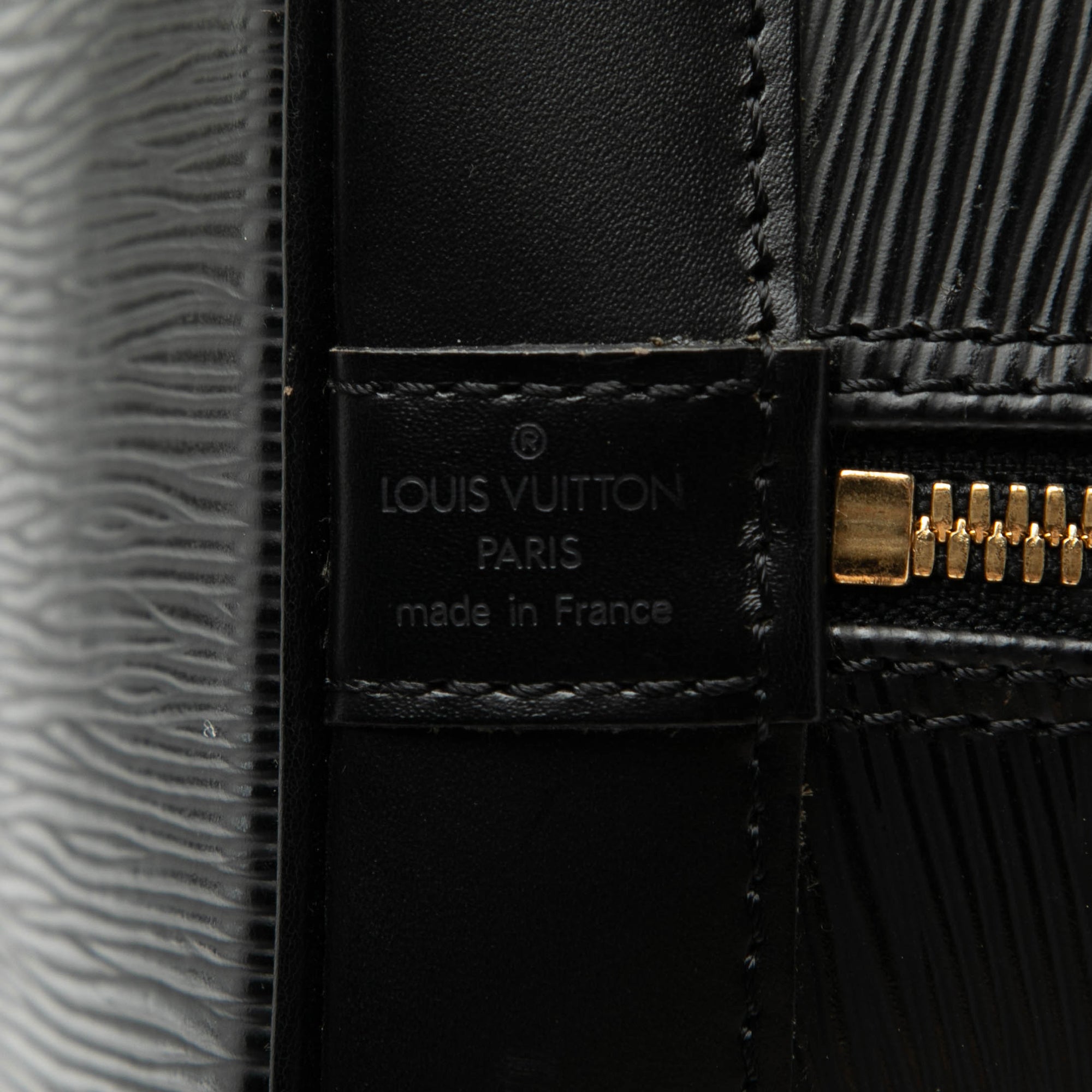 Product Details: Black Louis Vuitton Epi Alma PM Handbag. The Alma PM features an epi leather body, rolled handles, a top zip closure and an interior slip pocket. 8.9" L x 12" W x 6.3" D, 3.3" drop. Serial number AR1916.