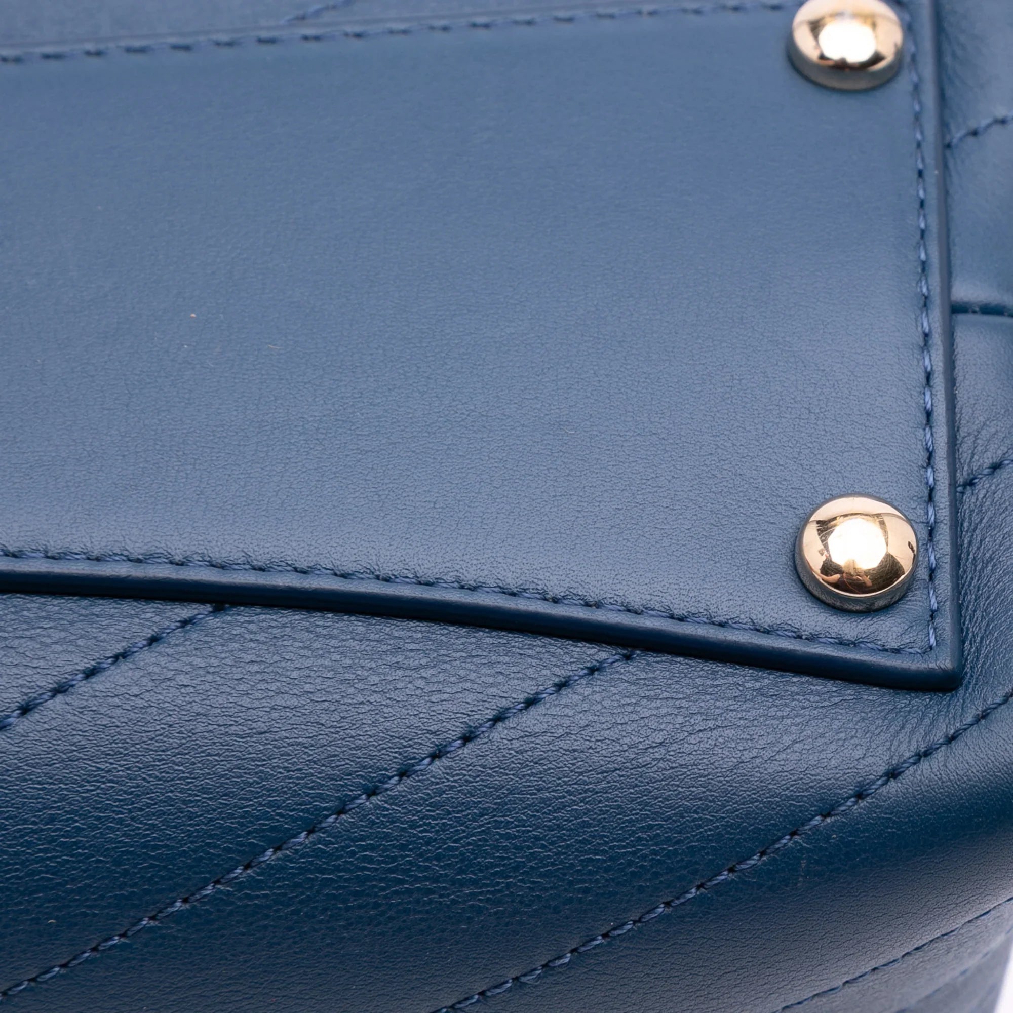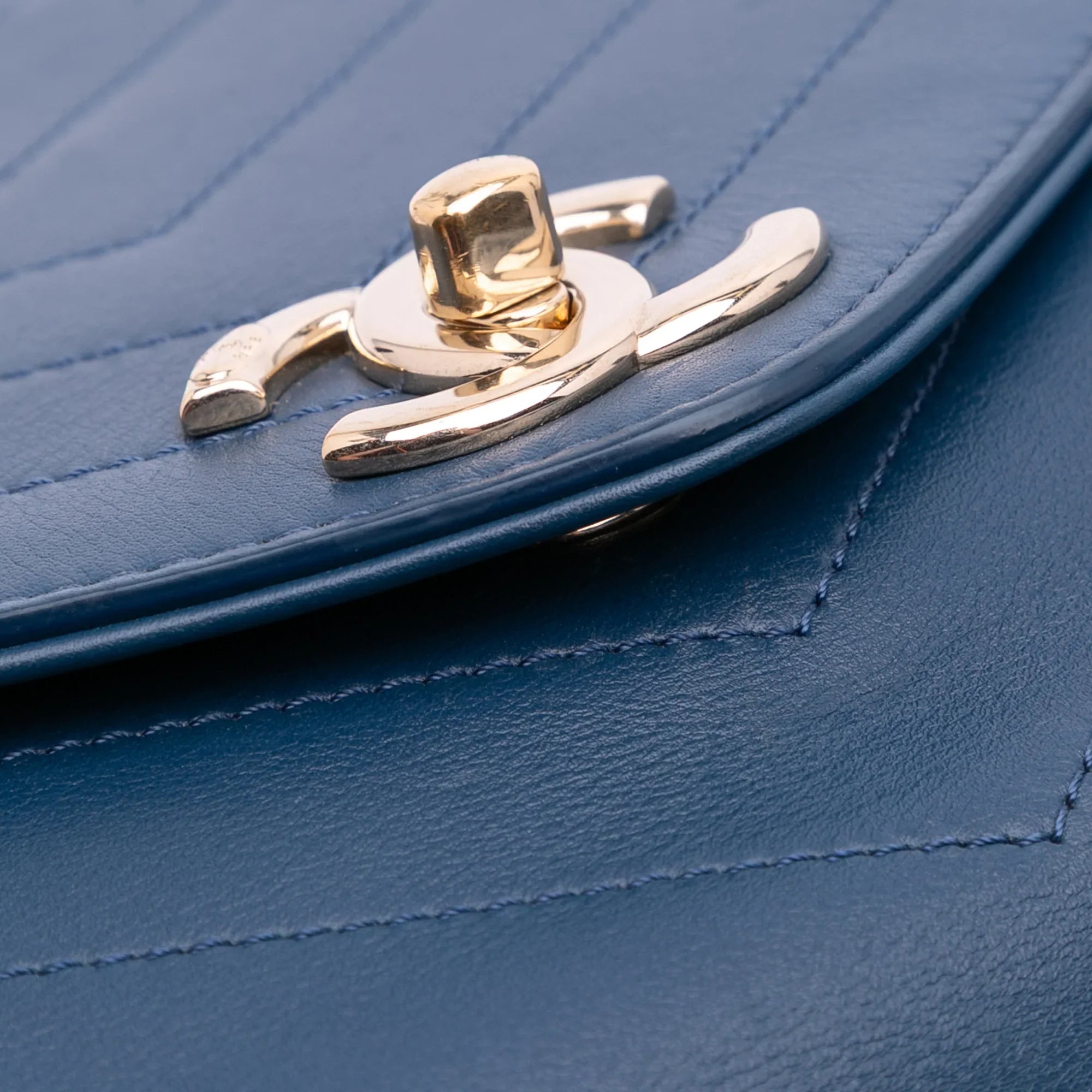 Blue Chanel Medium Calfskin Coco Chevron Envelope Flap Satchel - Designer Revival Blue Chanel Medium Calfskin Coco Chevron Envelope Flap Satchel - Designer Revival