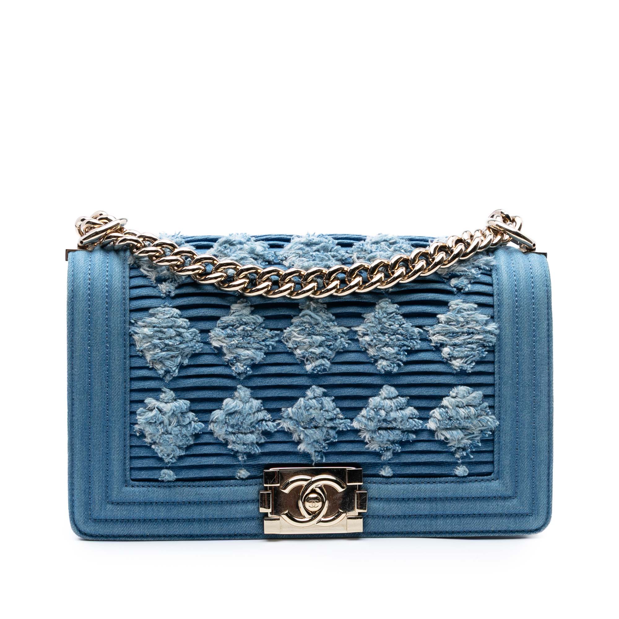 Blue Chanel Old Medium Pleated Denim Boy Flap Crossbody Bag
