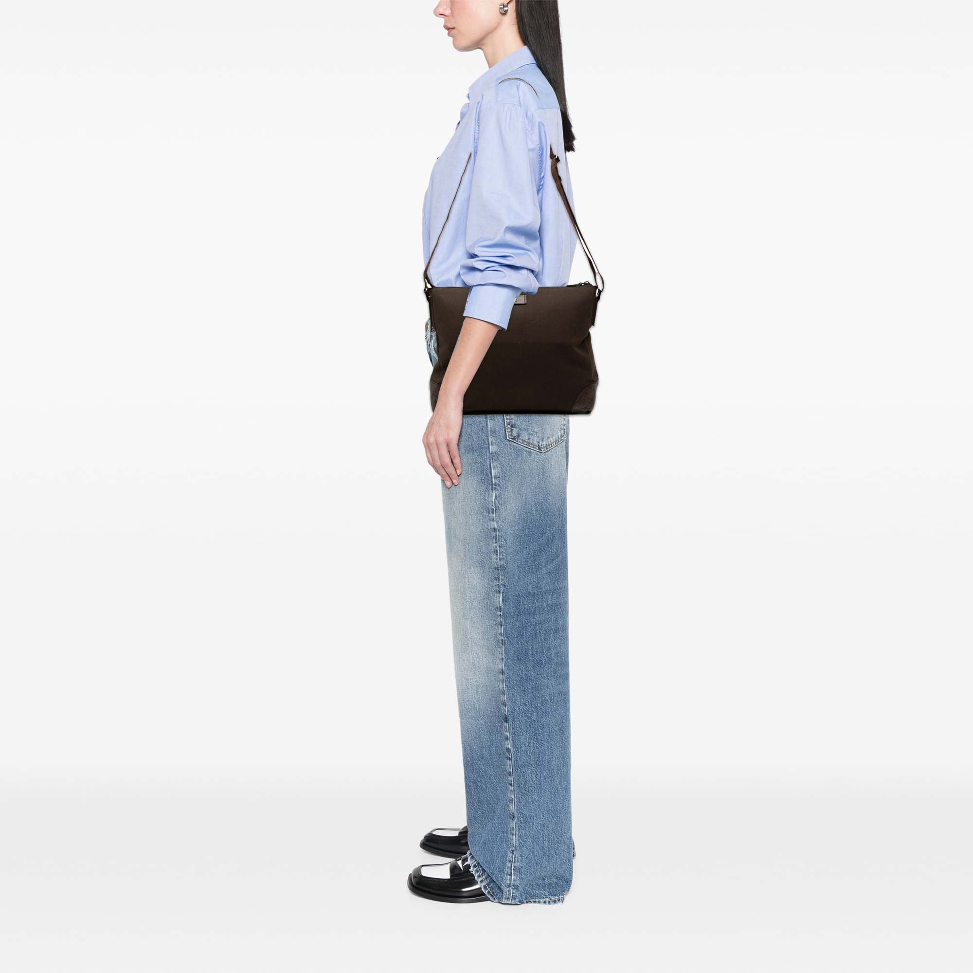 Brown Gucci Guccissima Trimmed Canvas Crossbody