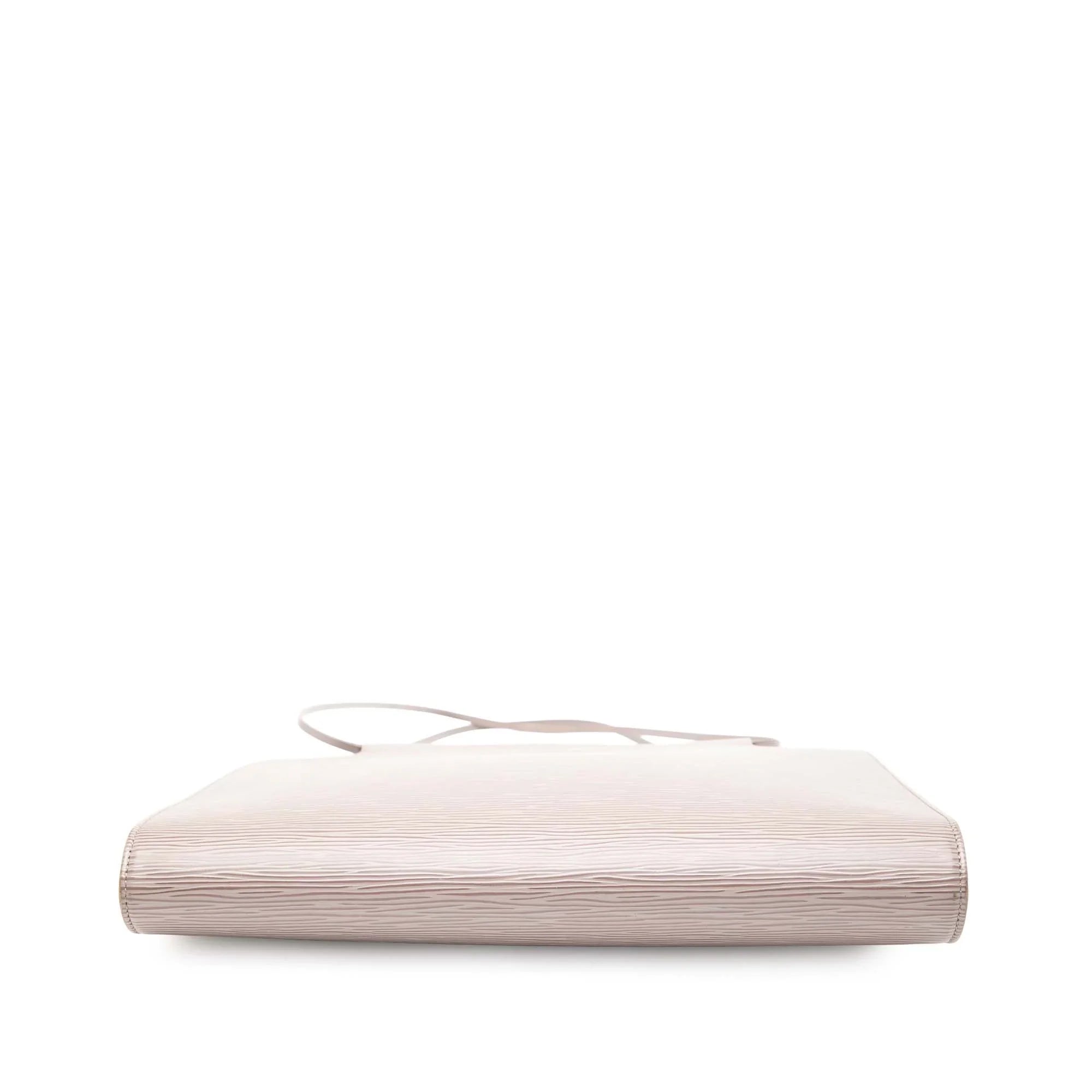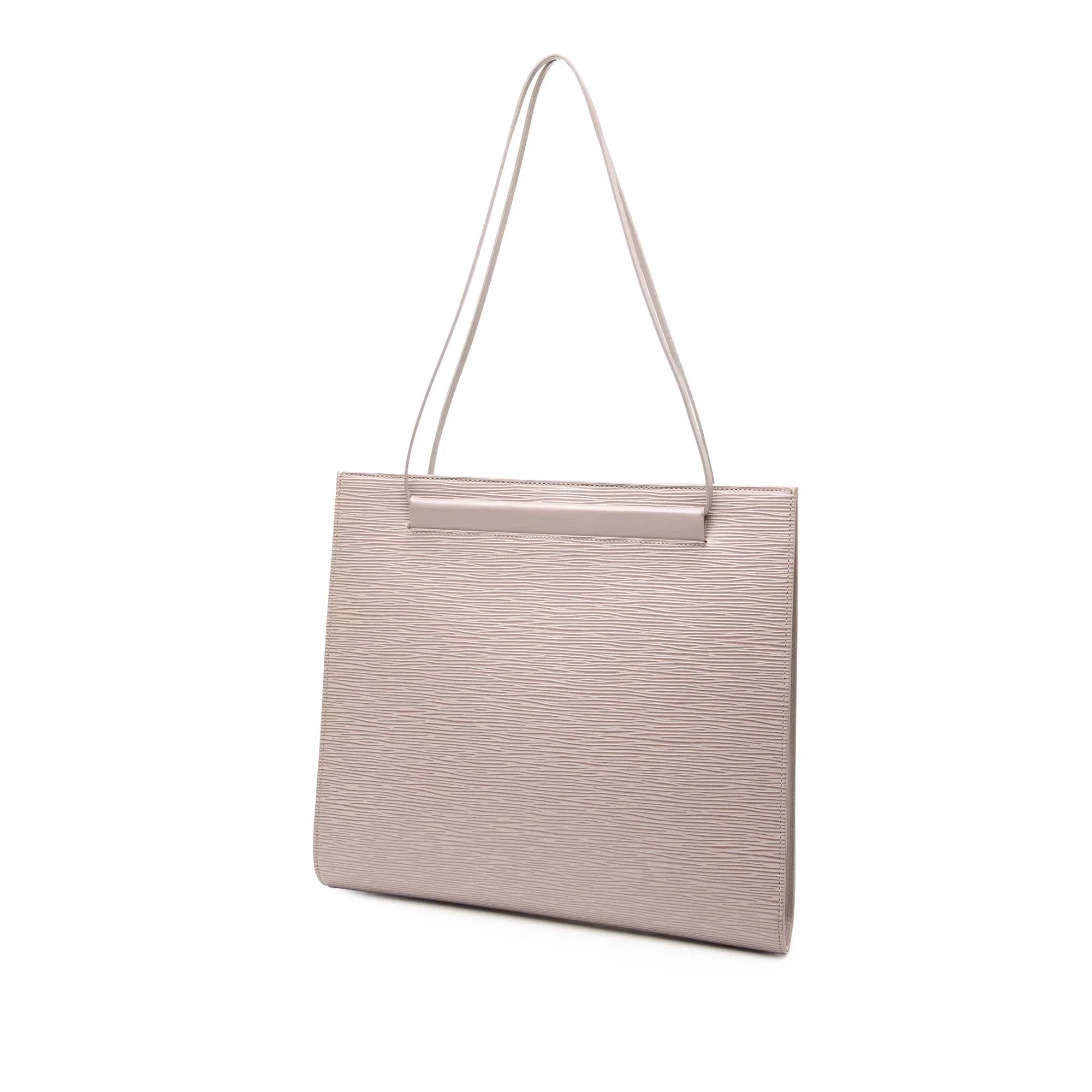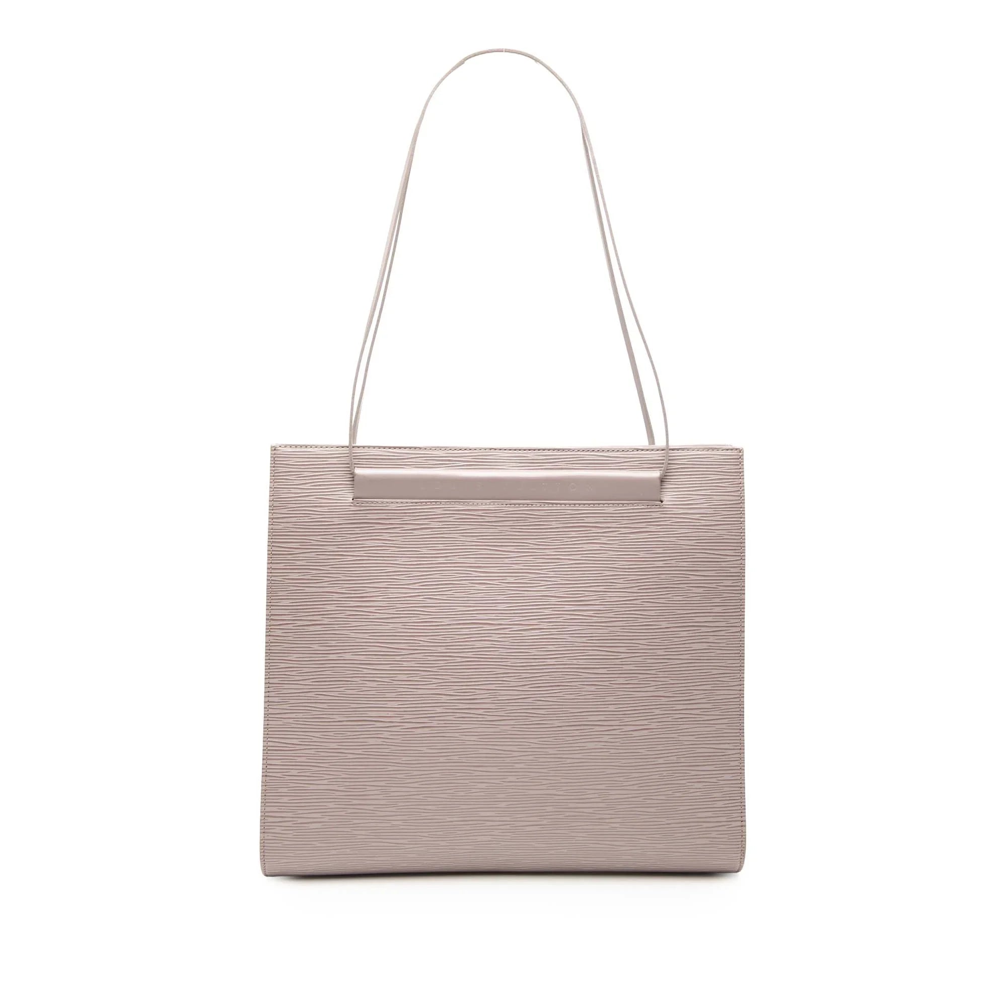 Product Details: Brown Louis Vuitton Epi Saint Tropez Shoulder Bag. The Saint Tropez features an epi leather body, flat leather straps, an open top with a magnetic closure, and an interior zip pocket. 10.6" L x 11.6" W x 1.4" D, 9.6" drop. Serial number MI1000.