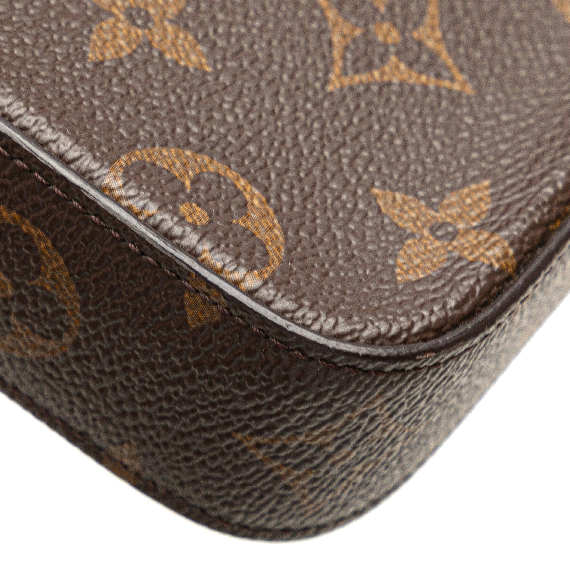 Product Details: Brown Louis Vuitton Monogram Felicie Strap And Go Crossbody Bag. The Felicie Strap and Go features a monogram canvas body, an adjustable and detachable flat strap, a front flap with snap closure, an interior slip pocket, and interior card slots. It comes with a detachable flap pouch with snap closure. 3.5" L x 6.5" W x 1.4" D.