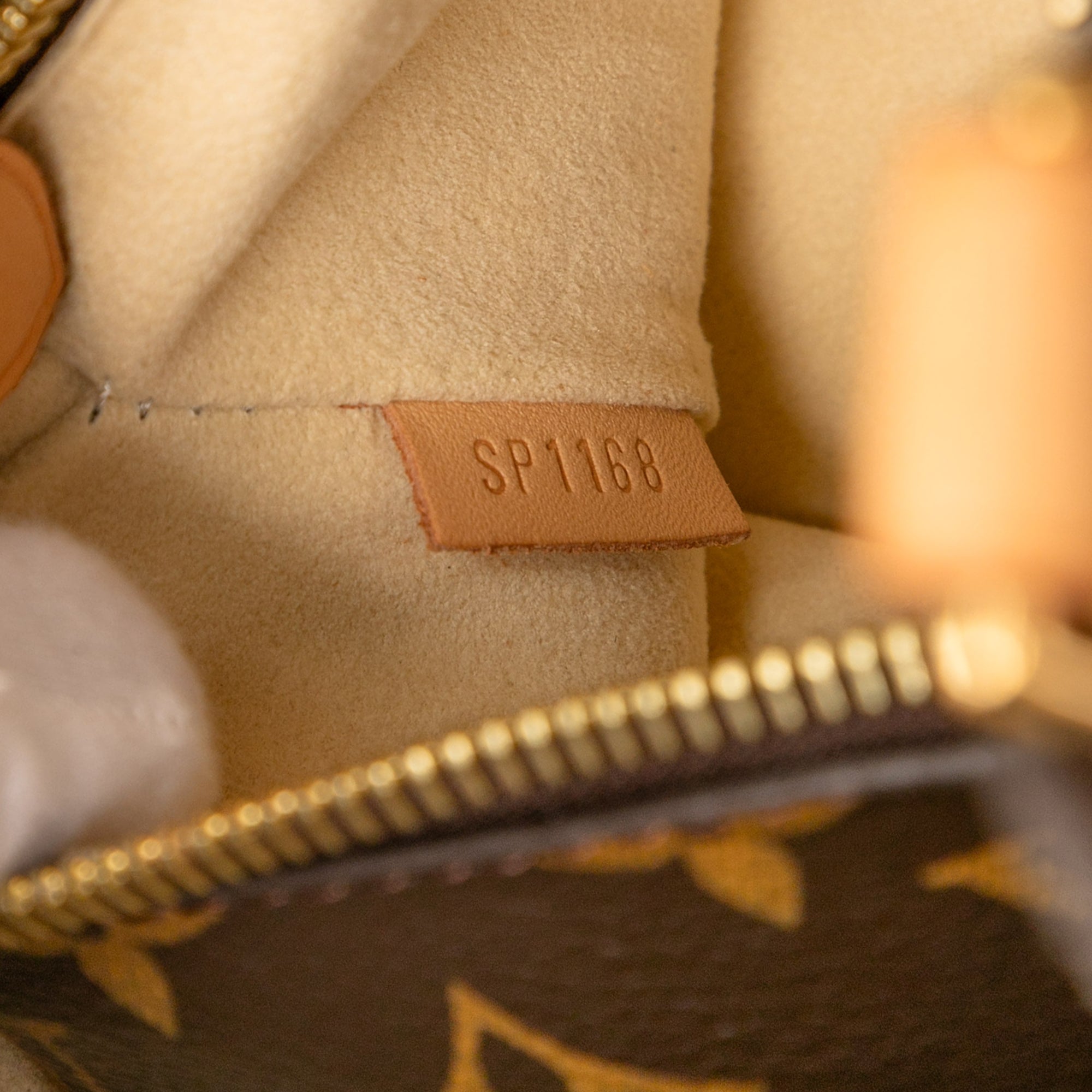 Product Details: Brown Louis Vuitton Monogram Summer Trunks Neonoe Bucket Bag. The Summer Trunks Neonoe features a printed monogram canvas body, a flat vachetta leather shoulder strap, an open top with a drawstring closure, and an interior zip pocket. 10.2" L x 10" W x 6.3" D. Serial number SP1168.