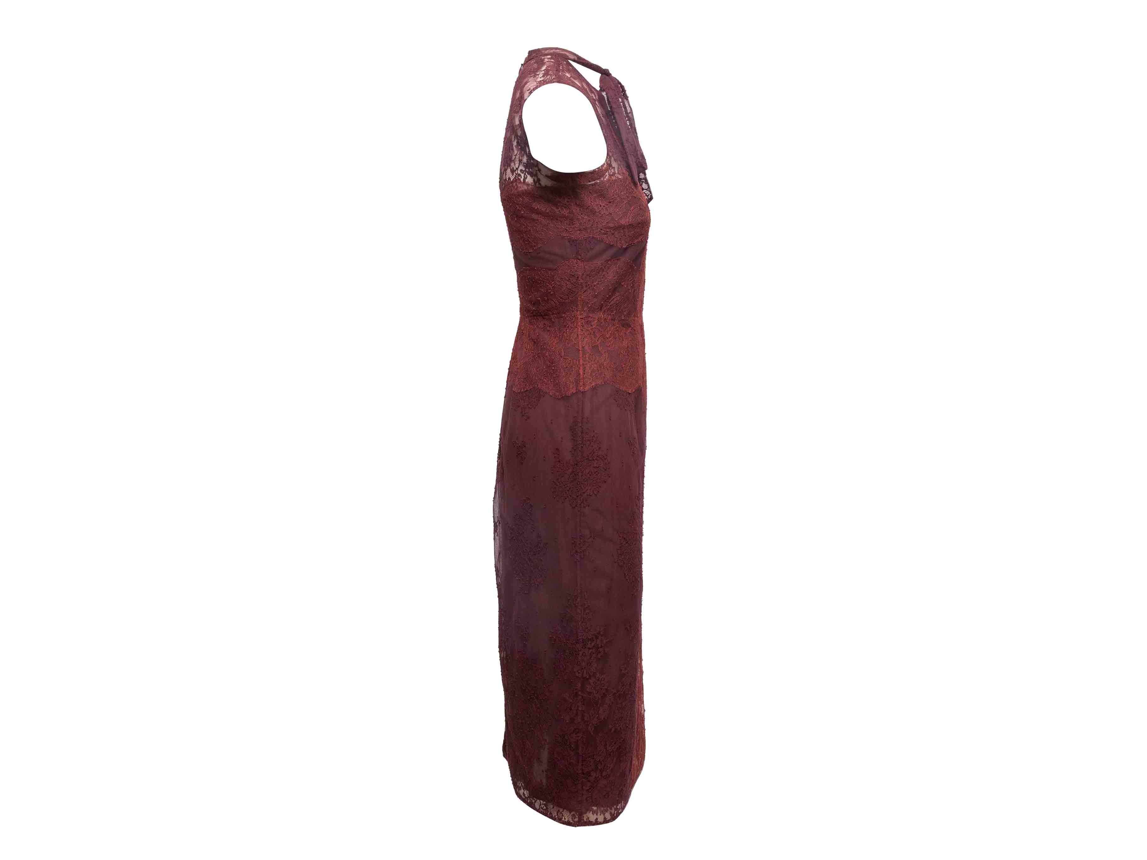 Burgundy Valentino Sleeveless Lace Midi Dress Size US 4