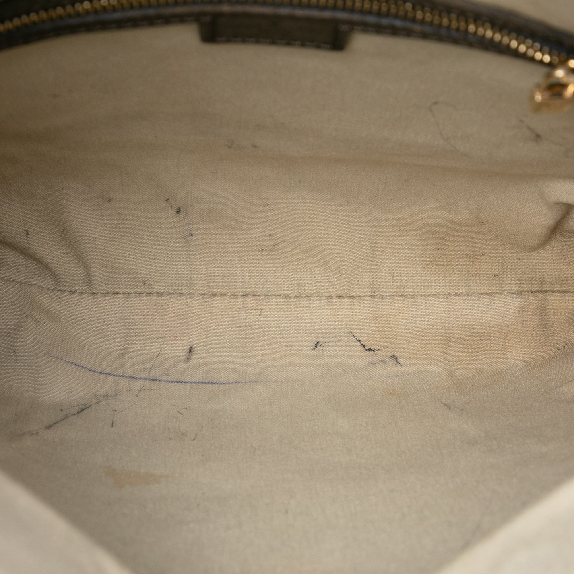 Condition: Pre-owned. Good. Exterior Back Creased. Exterior Back stained with Other. Exterior Bottom stained with Other. Exterior Corners Worn. Embellishment Scratched. Exterior Front Creased. Exterior Handle Cracked, Creased, Worn. Exterior Handle stained with Other. Interior Pocket stained with Other. Interior Lining stained with Pen Mark, Other. Practical Attachment Scratched. Exterior Side Worn. Exterior Side stained with Other. Exterior Top Cracked, Worn. Zipper Scratched.