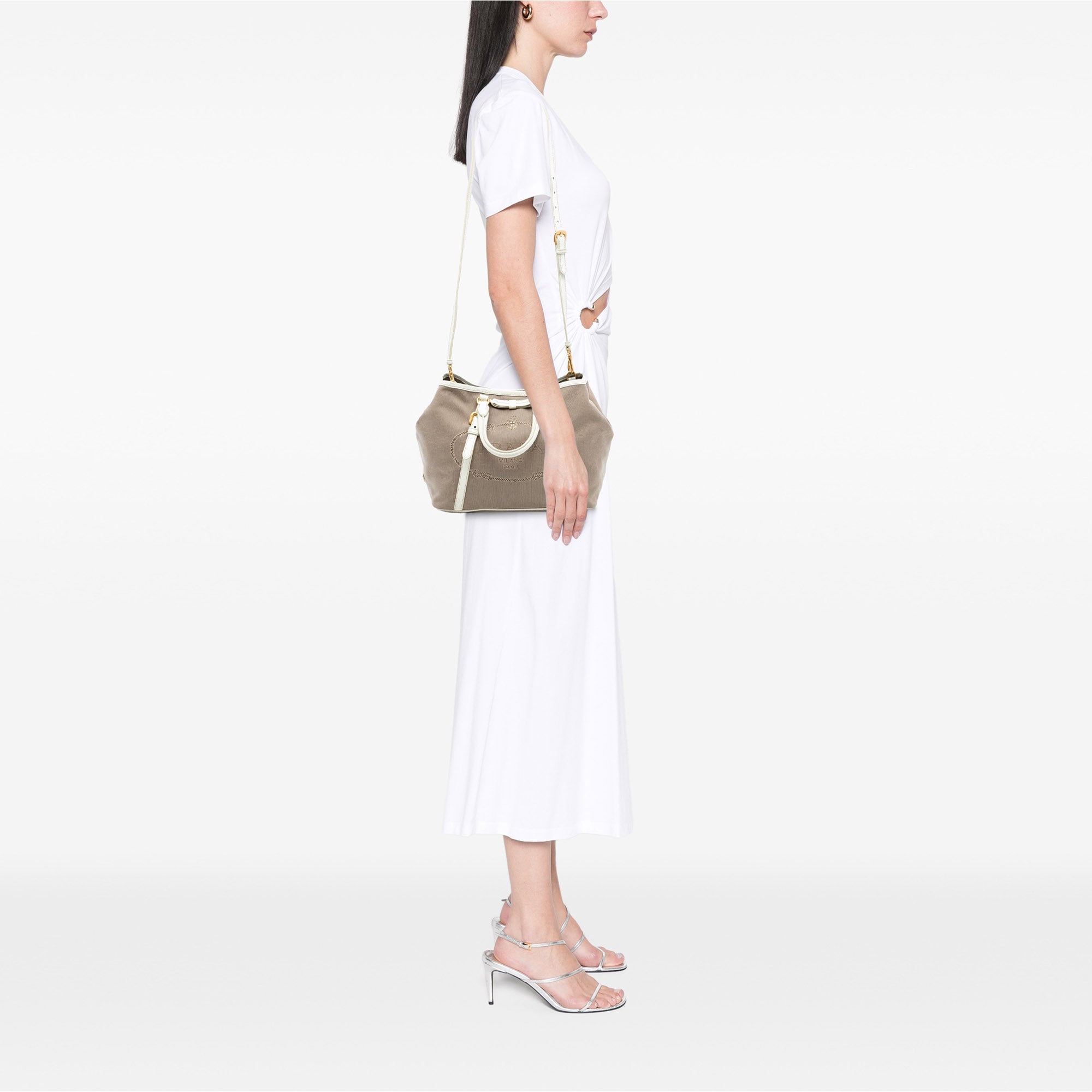 Beige Prada Canvas Canapa Logo Bow Satchel
