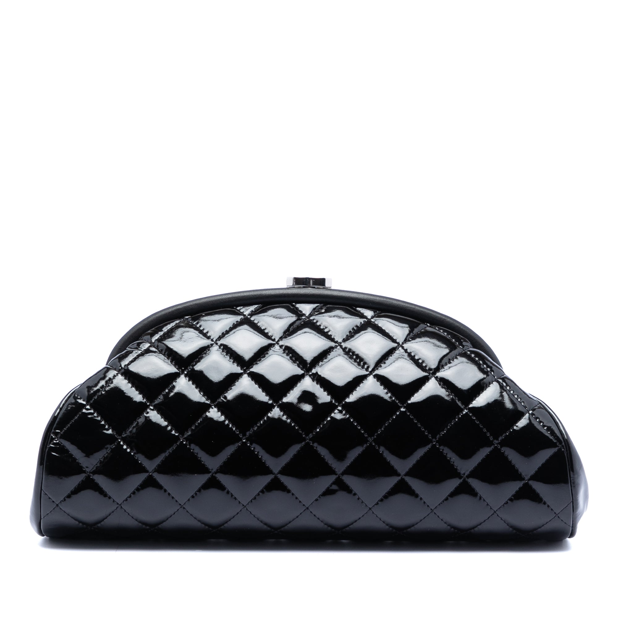 Black Chanel CC Quilted Patent Kiss Lock Clutch