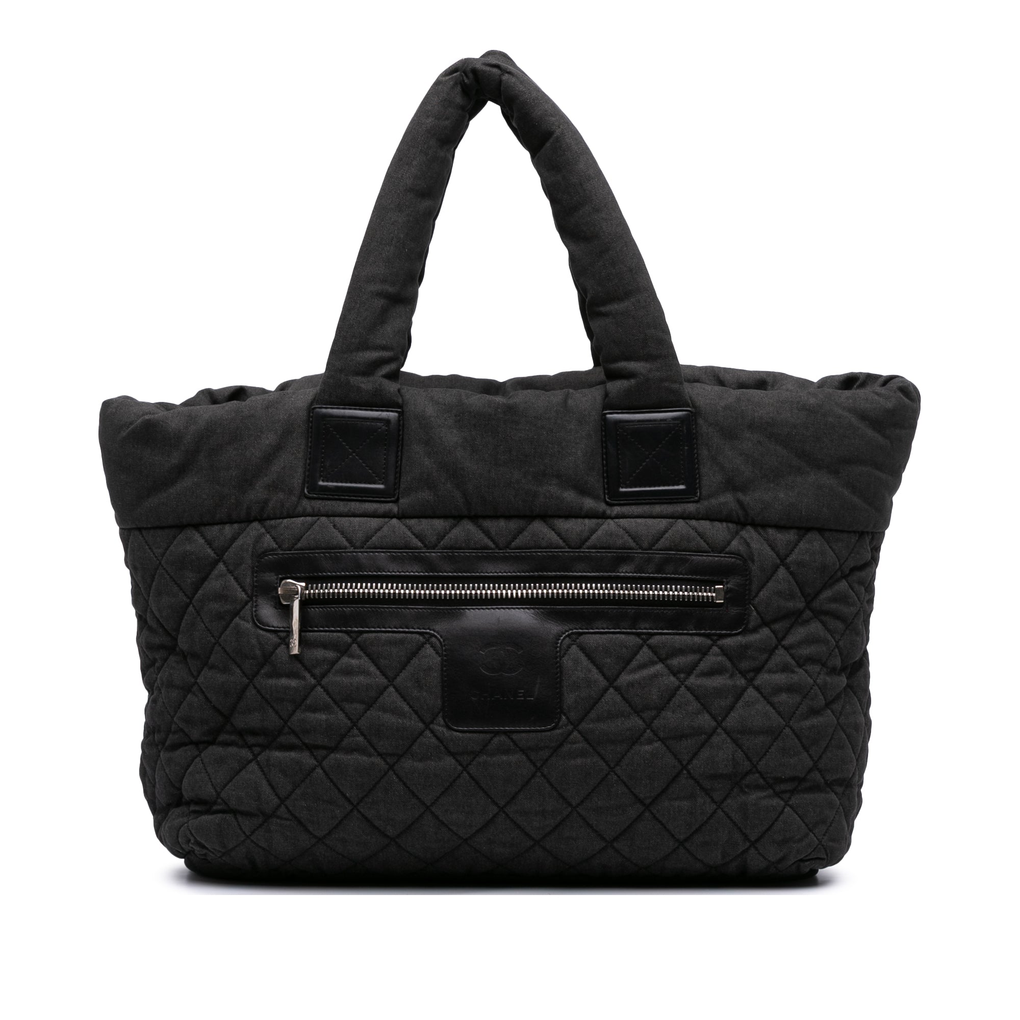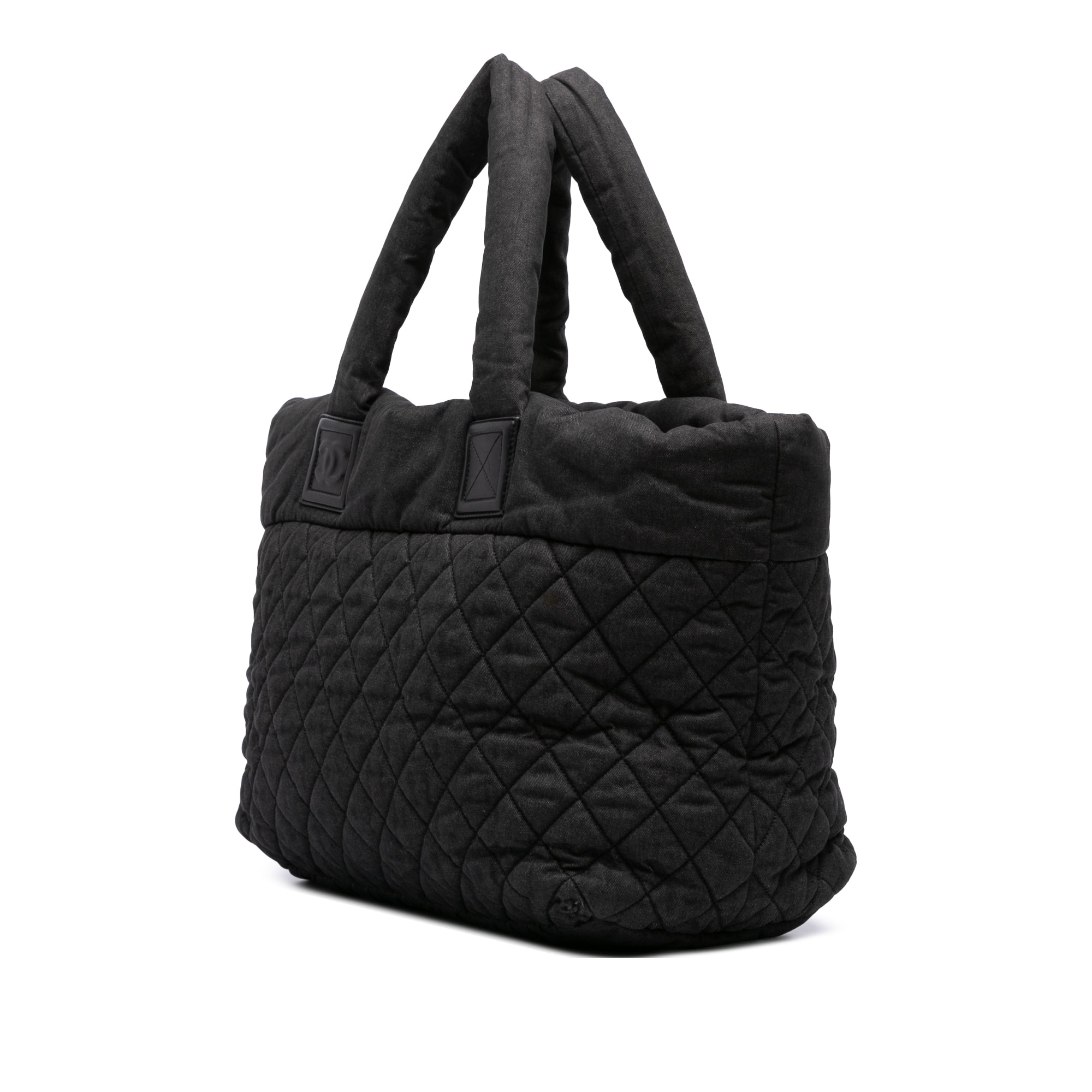 Black Chanel Large Quilted Denim Coco Cocoon Tote - Designer Revival Black Chanel Large Quilted Denim Coco Cocoon Tote - Designer Revival