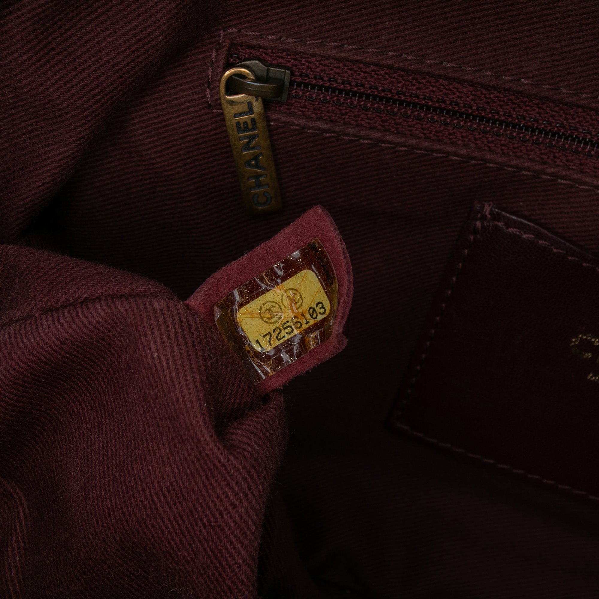 Product Details: Black Chanel Large Quilted Iridescent Calfskin Shiva Flap Shoulder Bag. This flap bag features a quilted leather body, a chain link strap with leather shoulder guard, a front flap with CC turn lock closure, a top zip closure, and interior zip and slip pockets. 7.9" L x 12.2" W x 3.1" D. Serial number 17256103.
