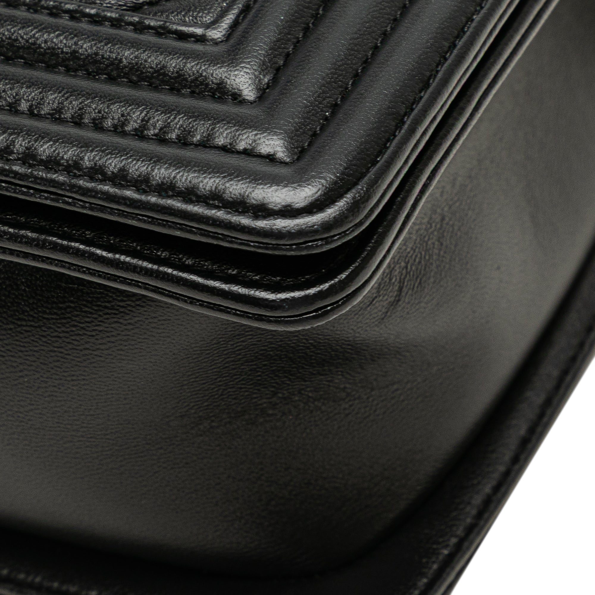Black Chanel Medium Chevron Wrinkled Lambskin Boy Flap Crossbody Bag