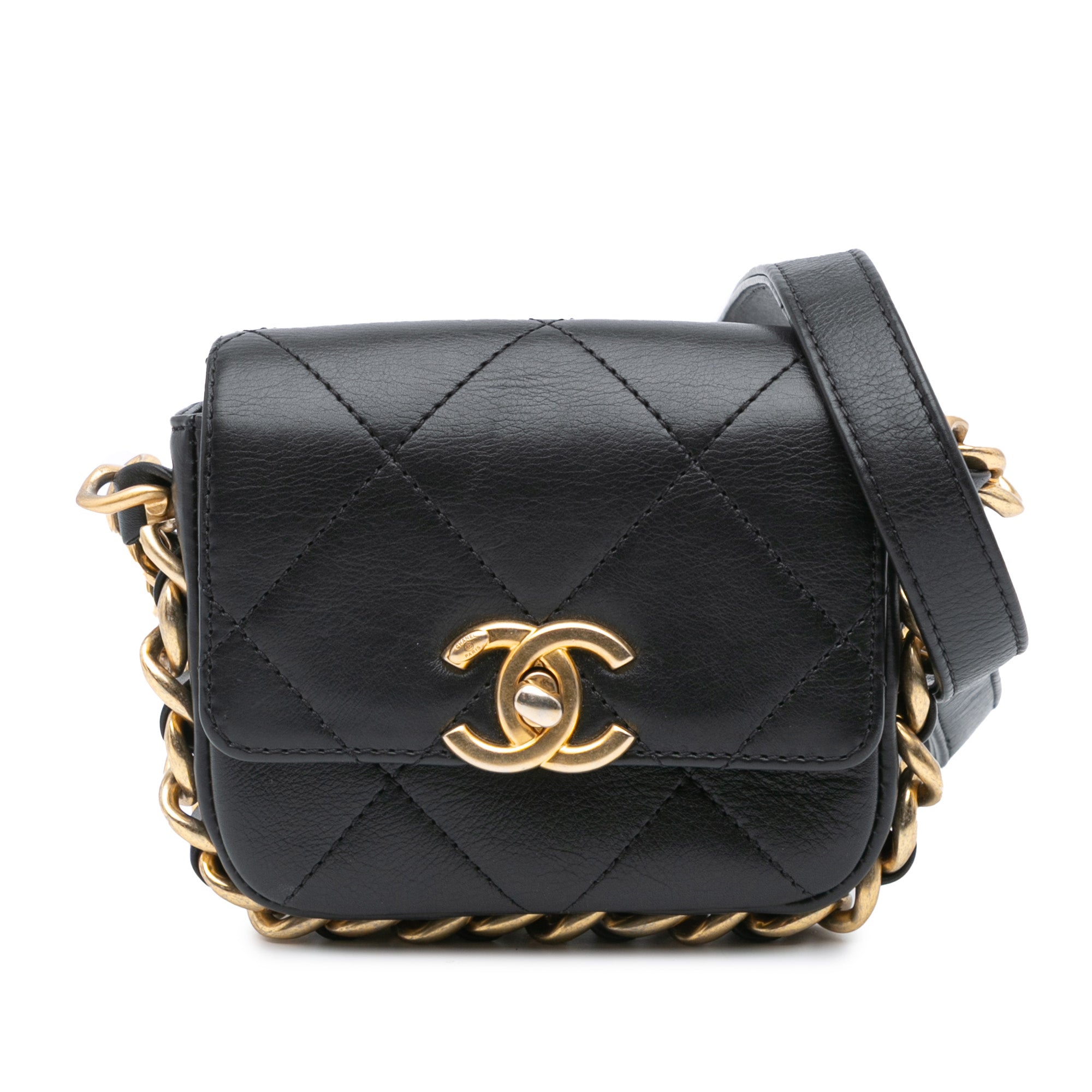 Black Chanel Mini Quilted Calfskin Framing Chain Flap Crossbody Bag