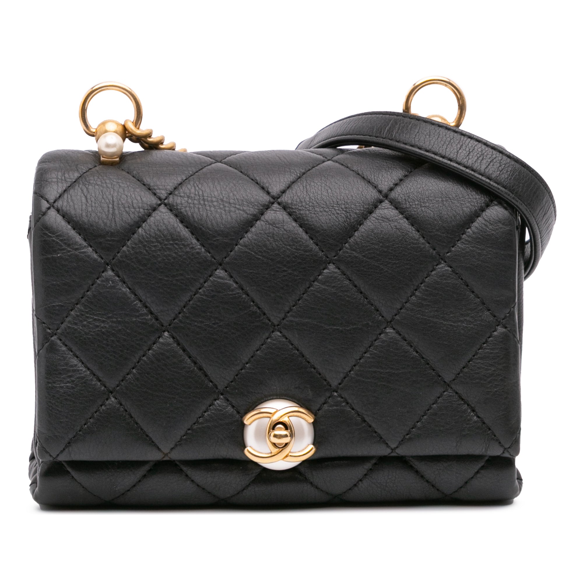 Black Chanel Mini Quilted Calfskin Pearl CC Accordion Flap Crossbody Bag