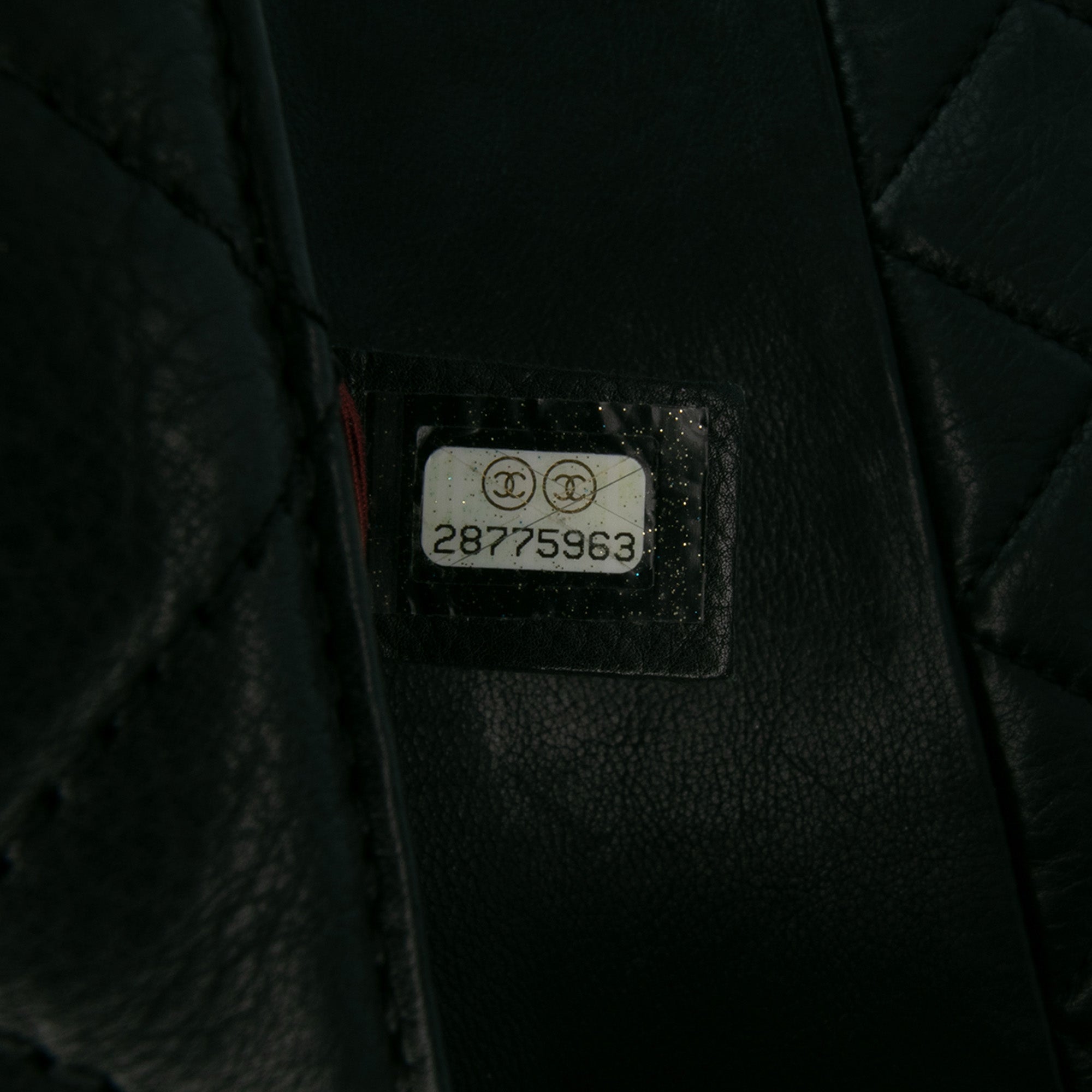 Product Details: Black Chanel Mini Quilted Calfskin Pearl CC Accordion Flap Crossbody Bag. This crossbody bag features a quilted leather body, a chain link strap with leather shoulder guard, a front flap with CC turn lock closure, an exterior slip pocket, and an interior slip pocket. 5.5" L x 6.7" W x 2.8" D. Serial number 28775963.