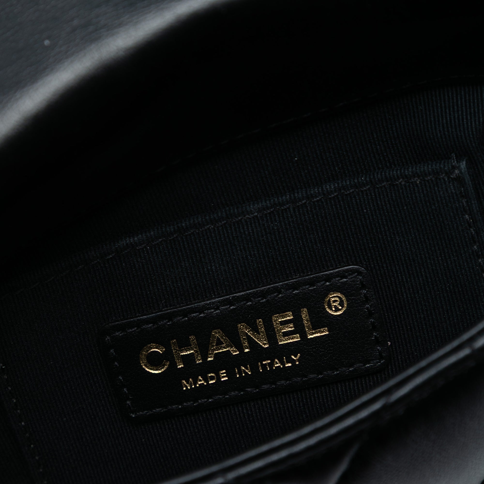 Black Chanel Mini Quilted Lambskin Lacquered Chain Flap Crossbody Bag