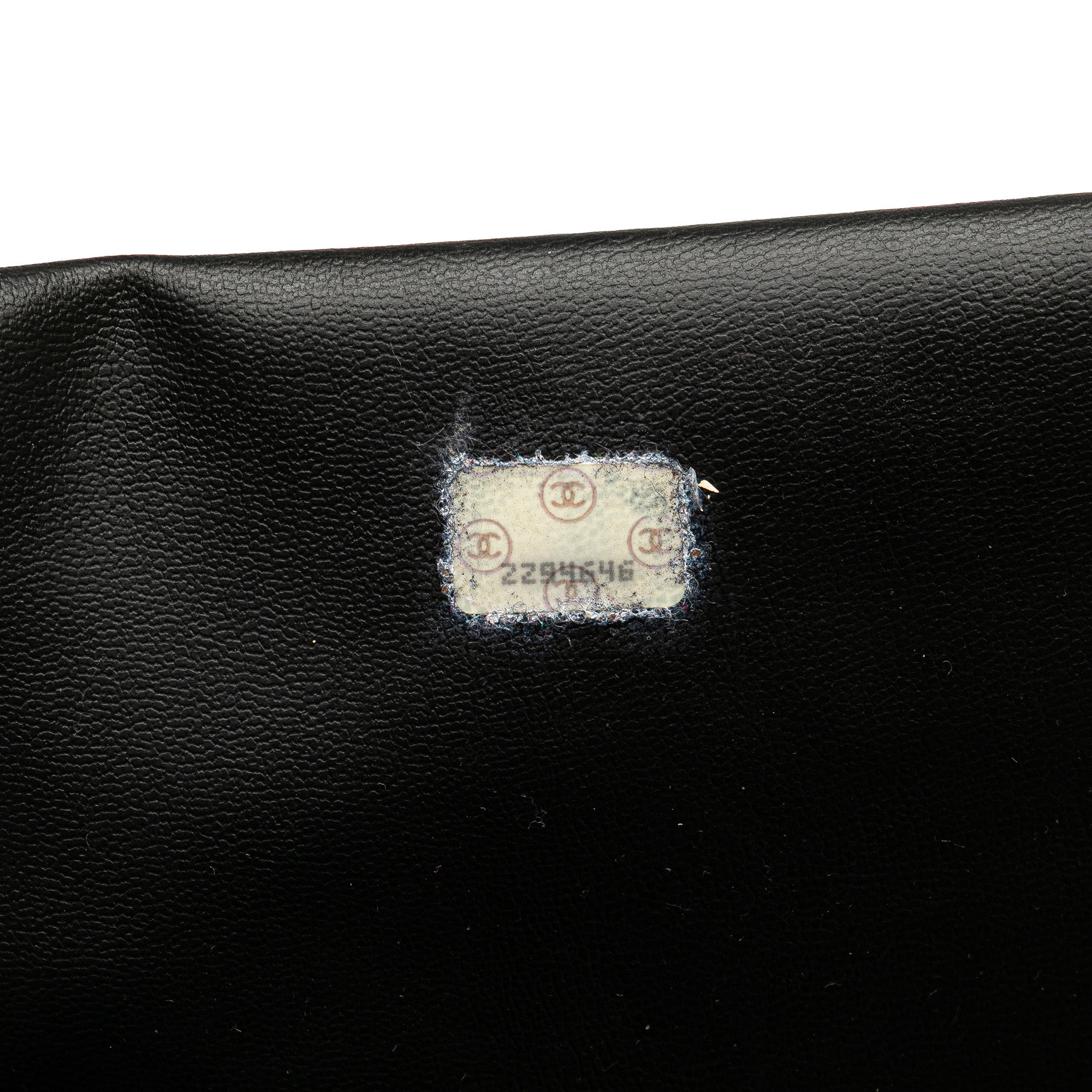 Product Details: Black Chanel Quilted Caviar Chain Tote. This tote bag features a quilted caviar leather body, leather woven chain and flat leather straps, exterior front and back slip pockets, top magnetic closures, and interior zip pockets. 8.7" L x 11" W x 2.2" D, 15.2" drop. Serial number 2294646.