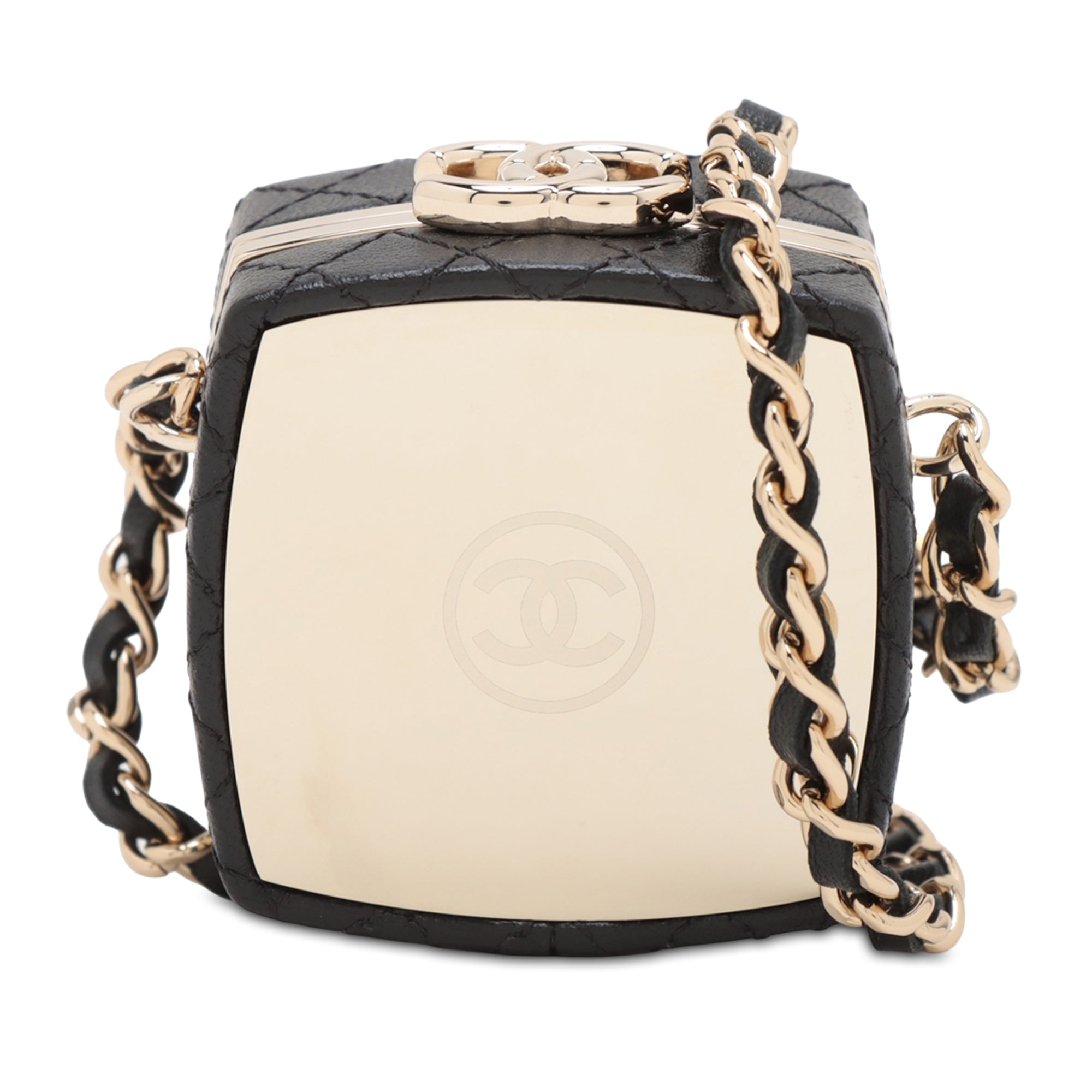 Black Chanel Quilted Lambskin Make-Up Box Clutch With Chain Crossbody Bag