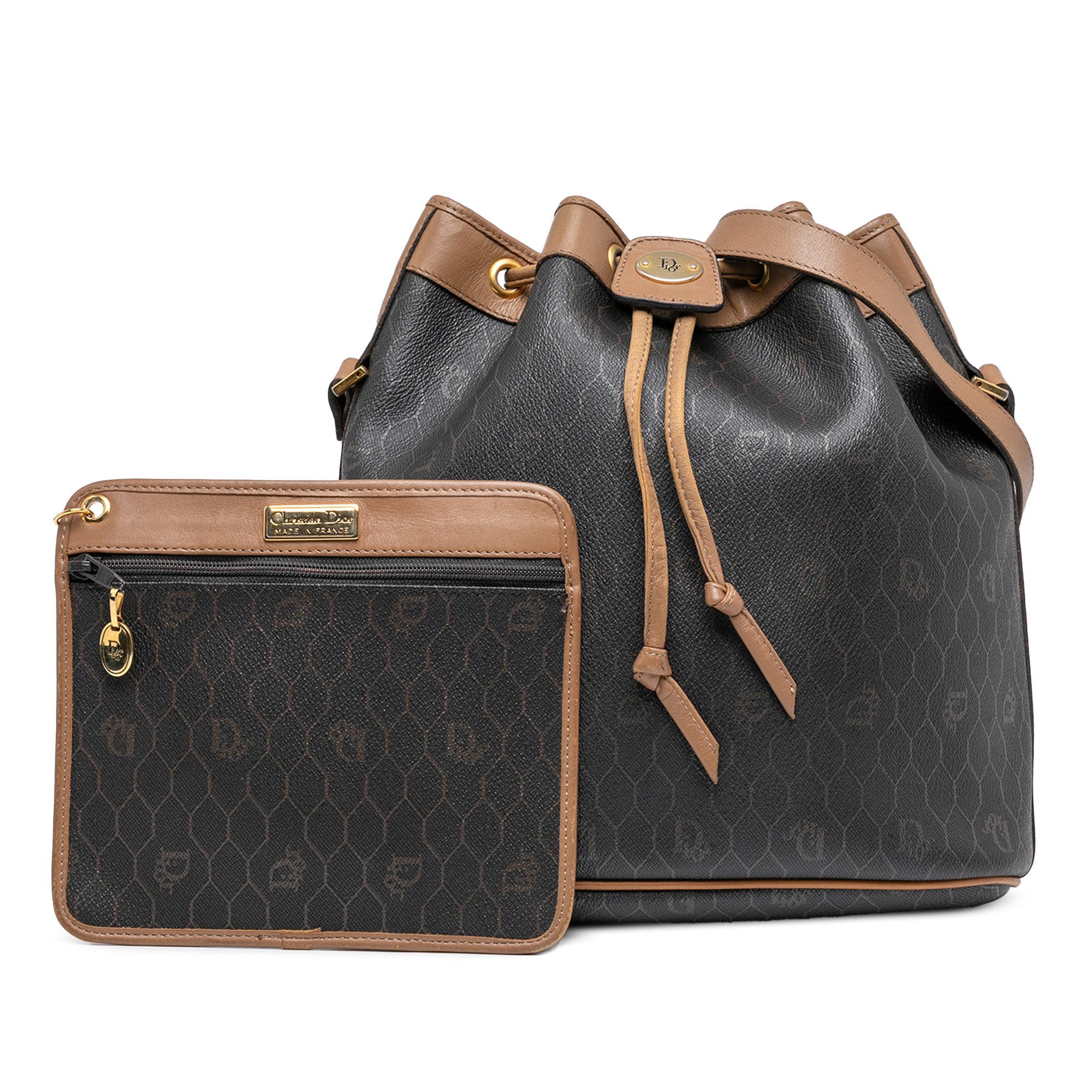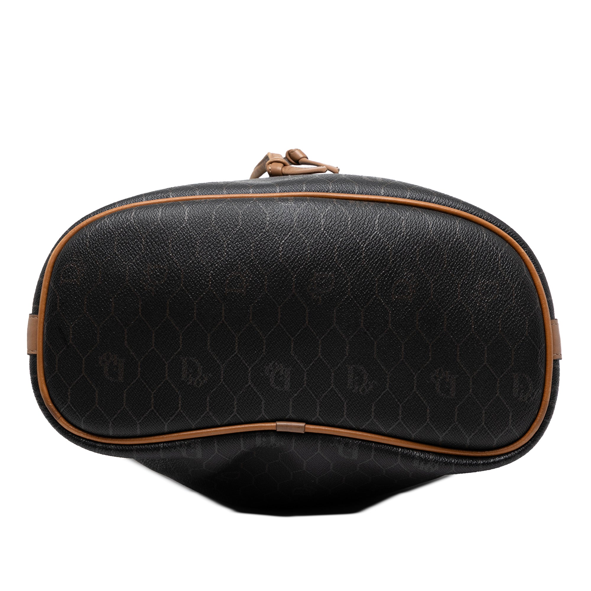 Black Dior Honeycomb Coated Canvas Drawstring Bucket Bag