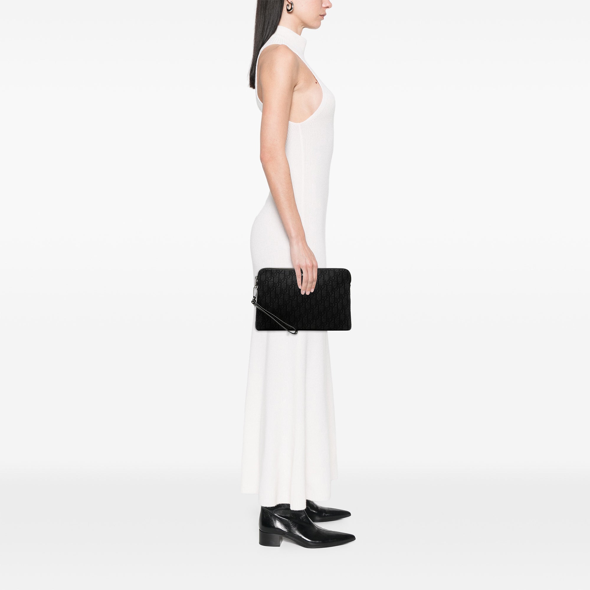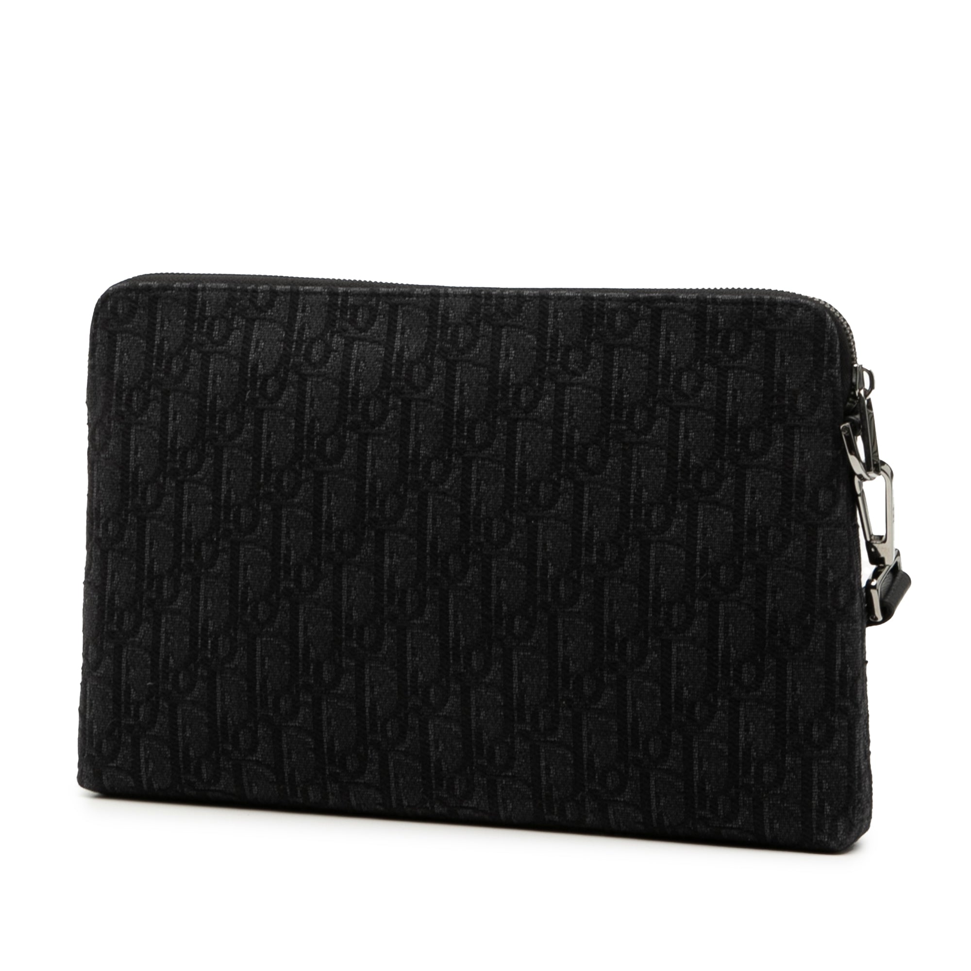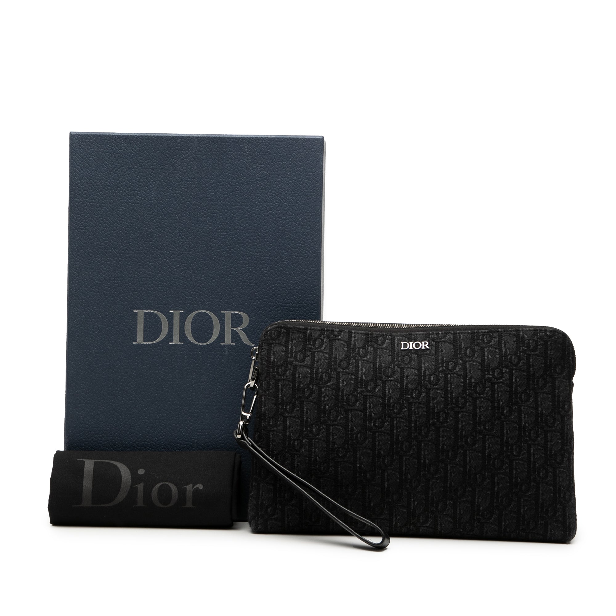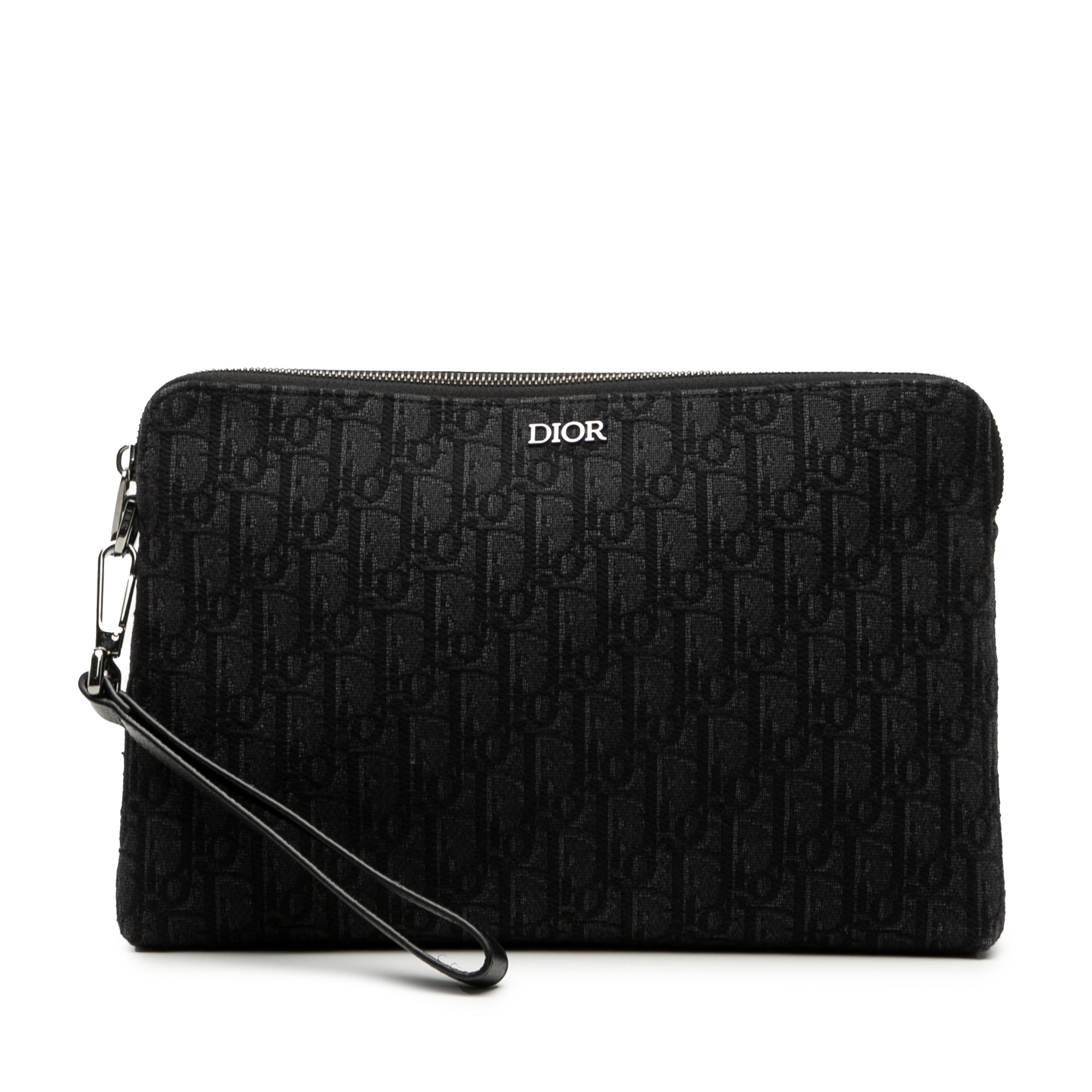 Black Dior Oblique Canvas A4 Zipped Pouch Clutch Bag
